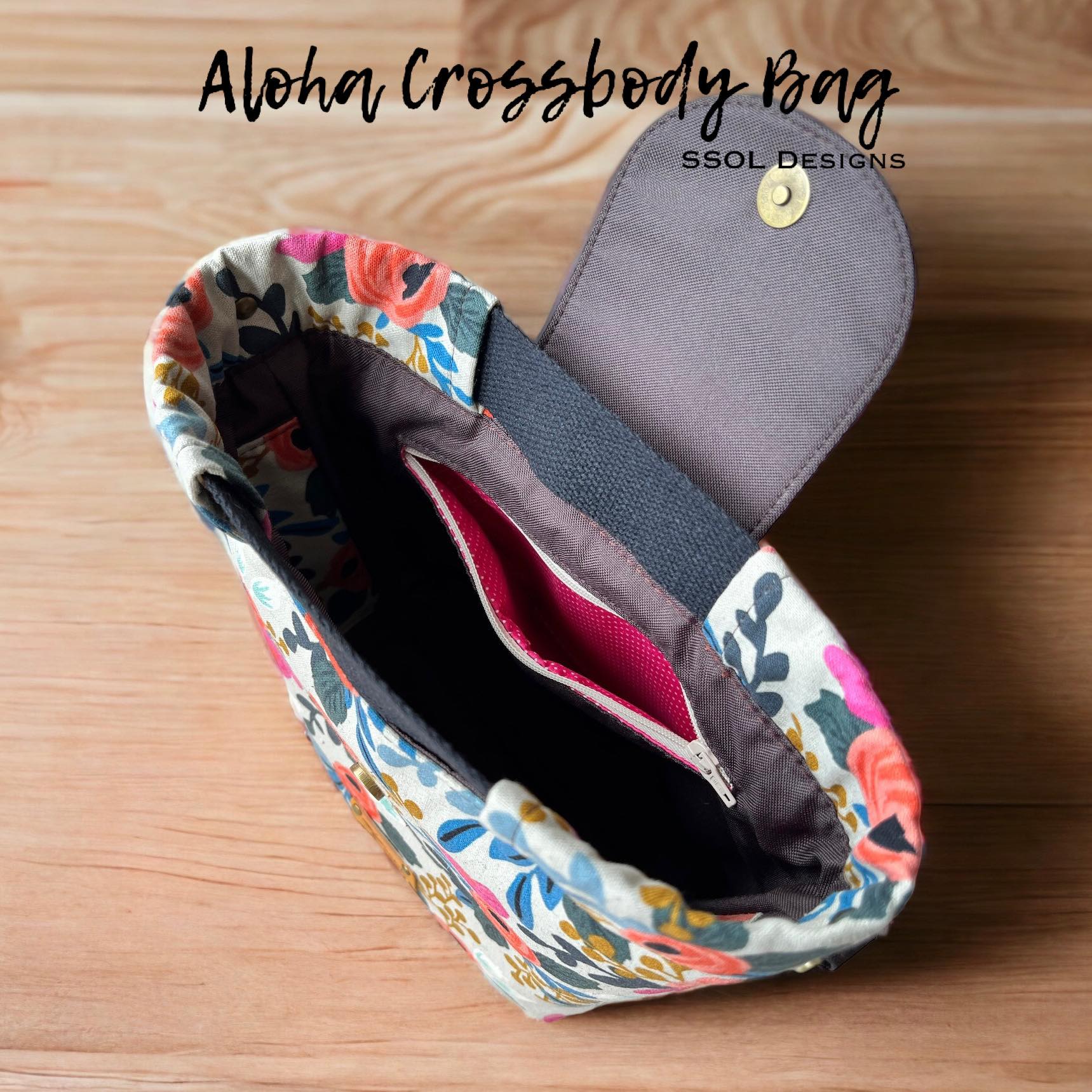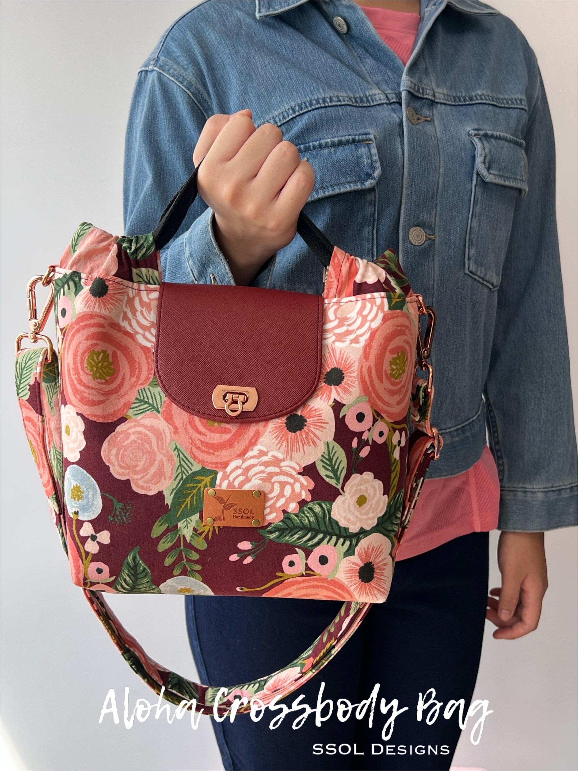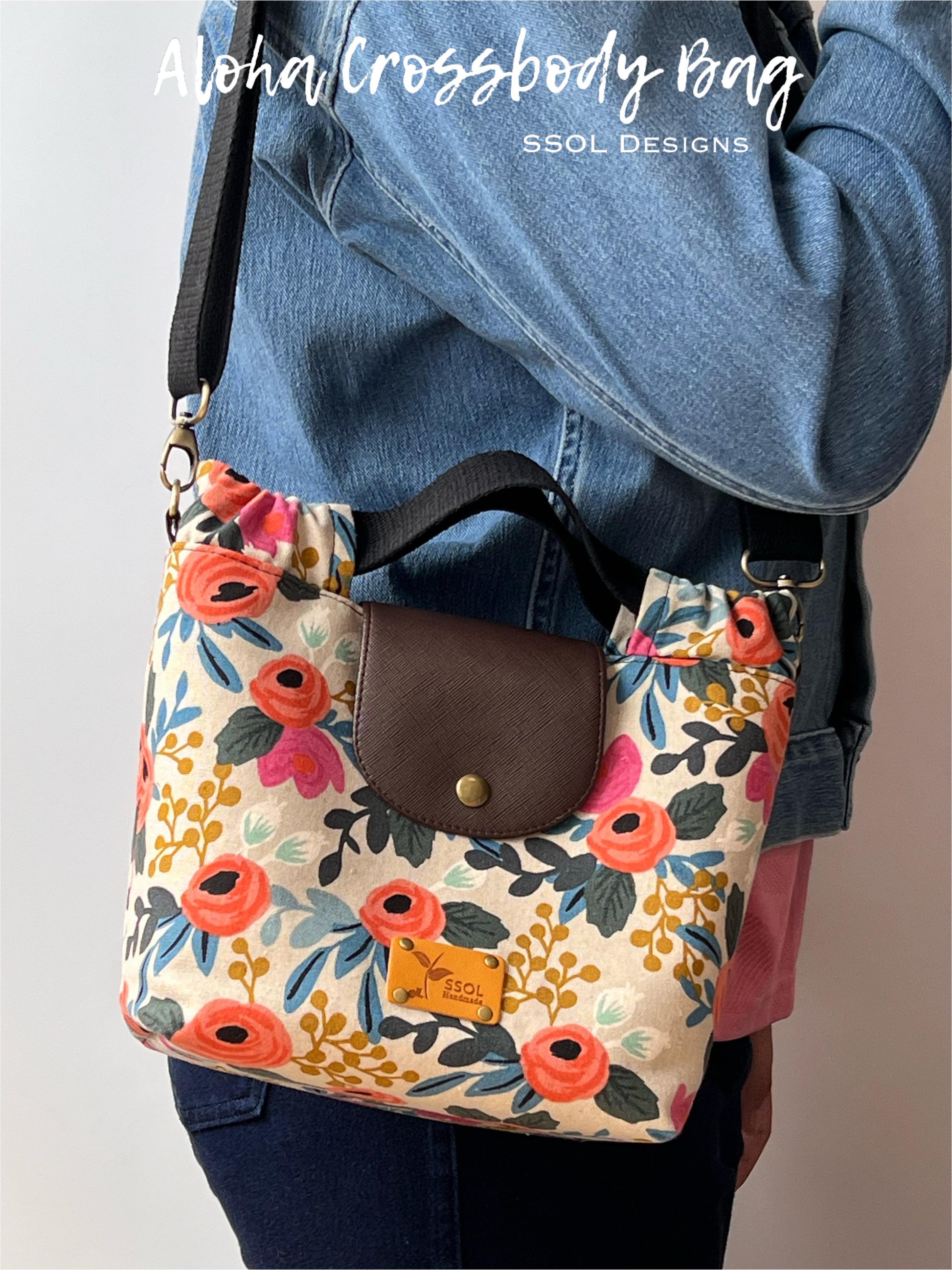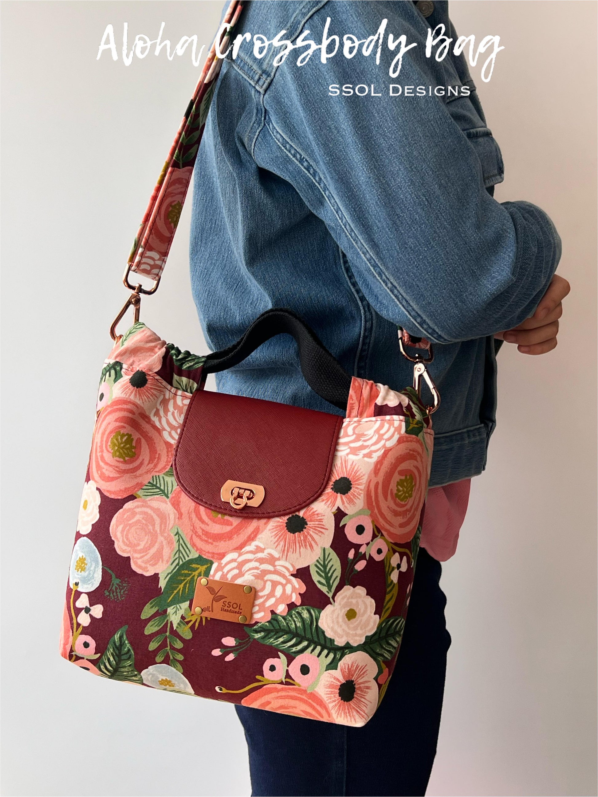 Introducing the Aloha Crossbody Bag, a mid-sized and adorable tote bag that's perfect for carrying all your essentials in style! This pattern comes in two sizes - Regular and PLUS. This tote bag is designed to be both practical and stylish, with a convenient grab handle that cinches the sides of the bag for easy carrying. The flap closure ensures that your belongings are secure, while the broad base of the bag means you can fit more items than ever before.