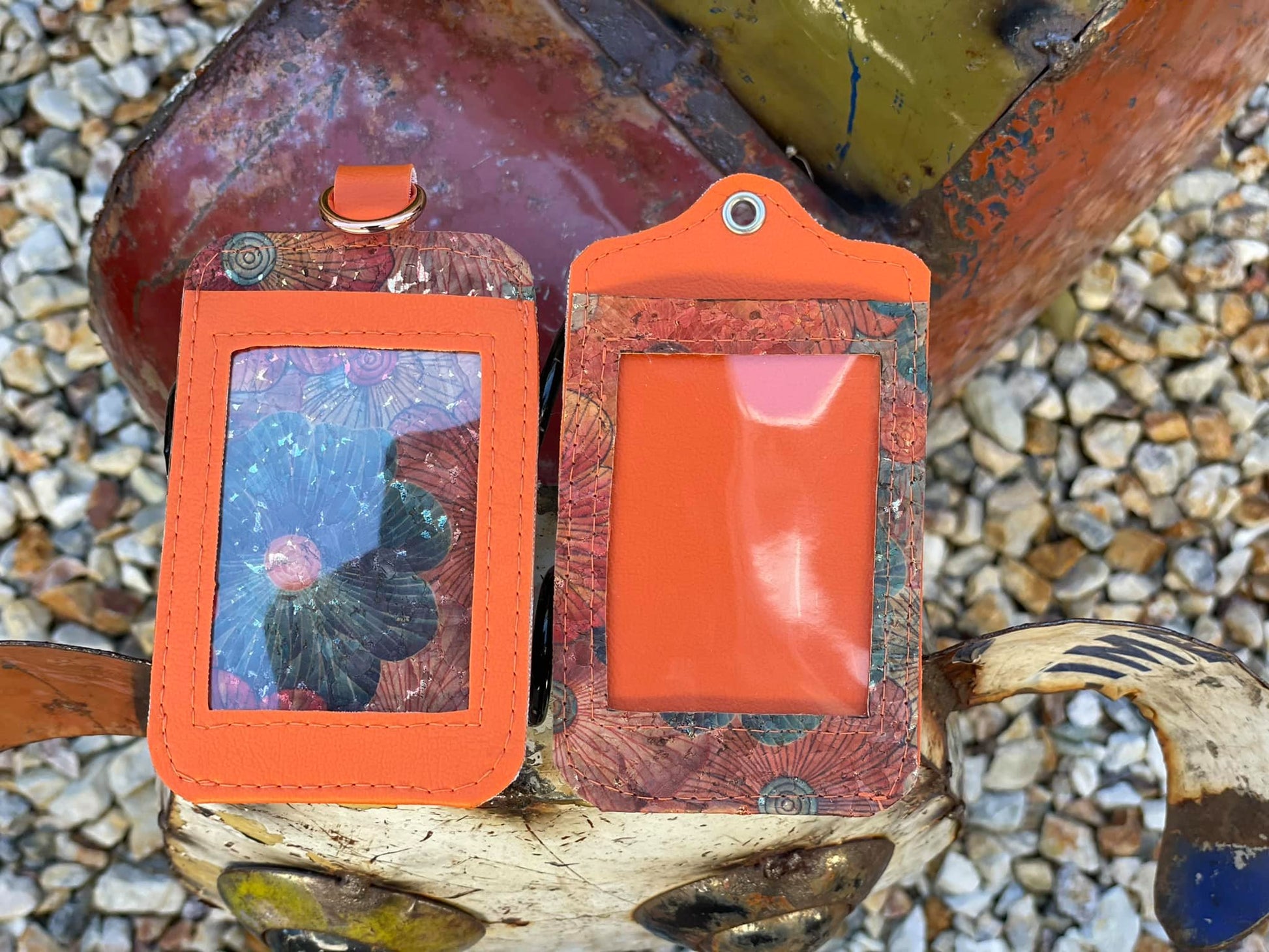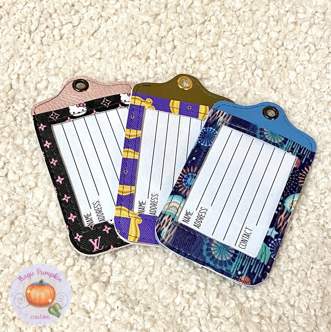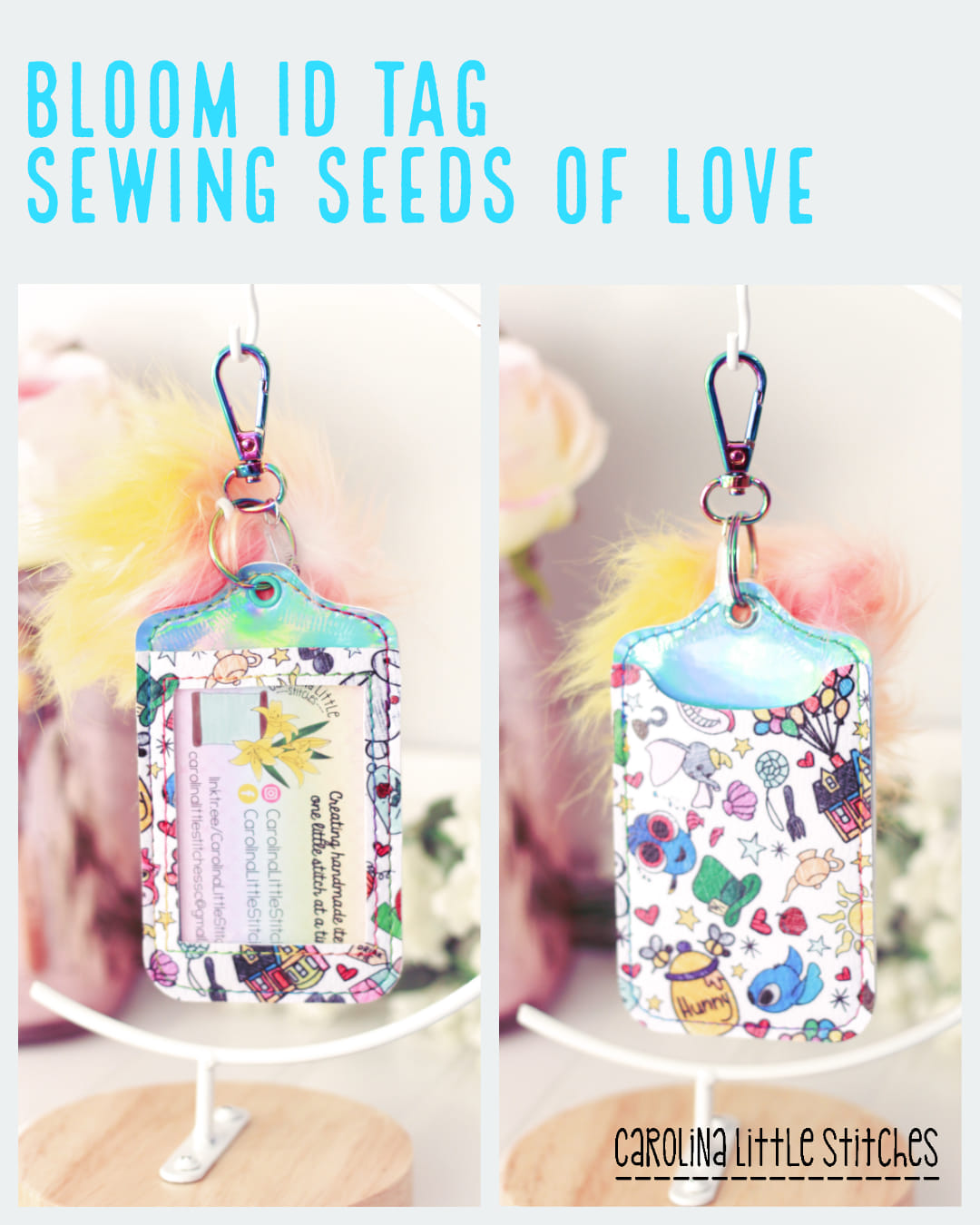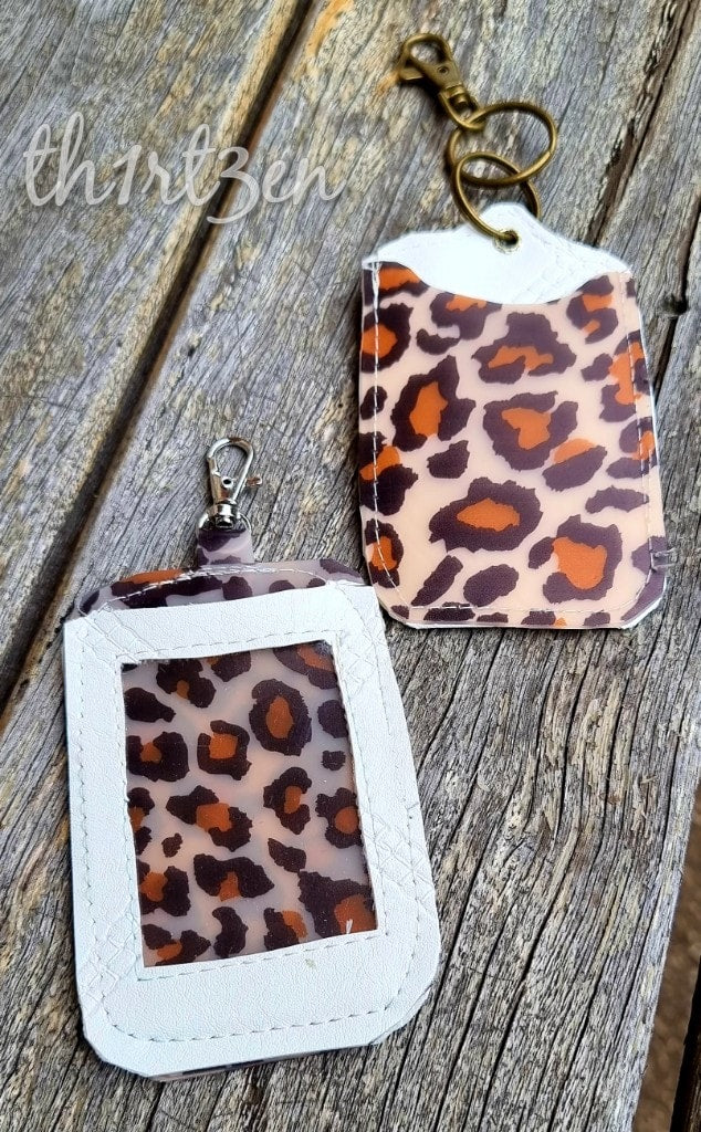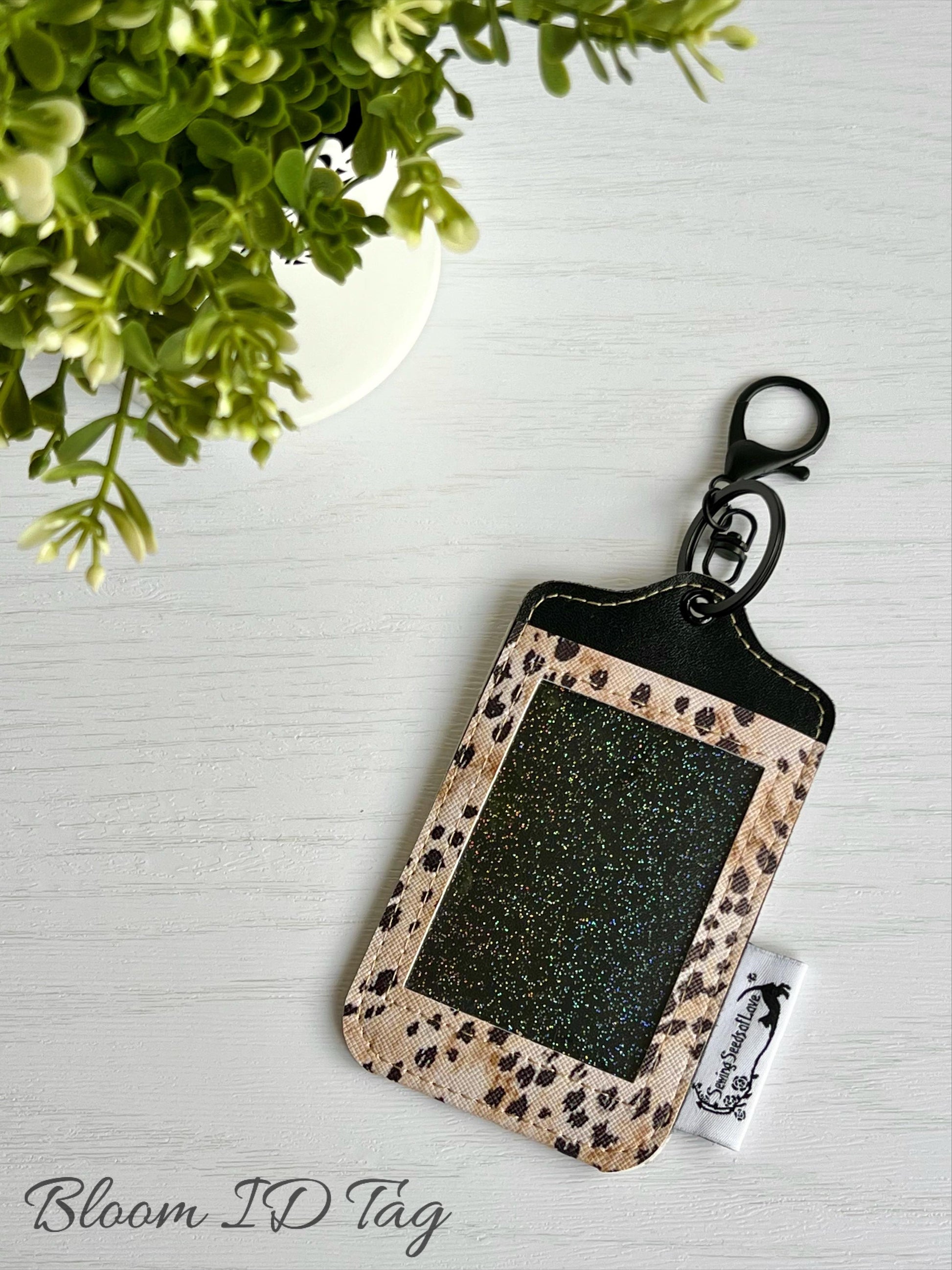 The Bloom ID Tag (a raw-edge pattern) is a basic cardholder design that will hold at least 2 cards. The front of the tag features a clear window for your ID and there is an additional card slot at the back. Add a strip of leather cording and it can be used as a luggage tag as well!