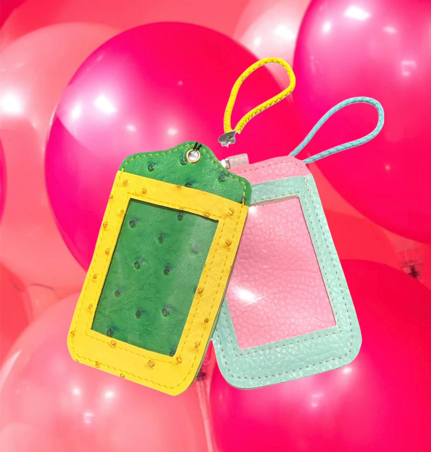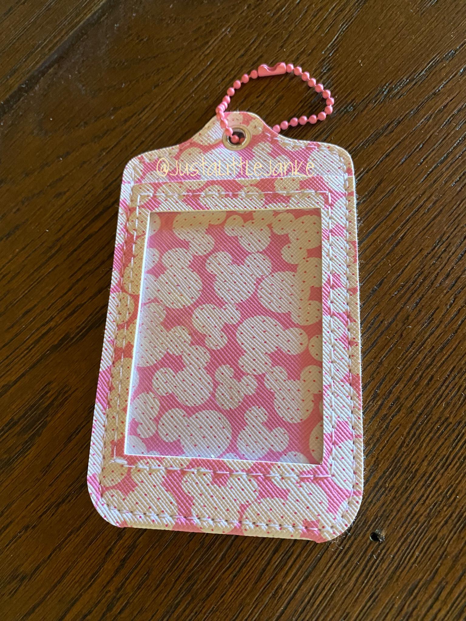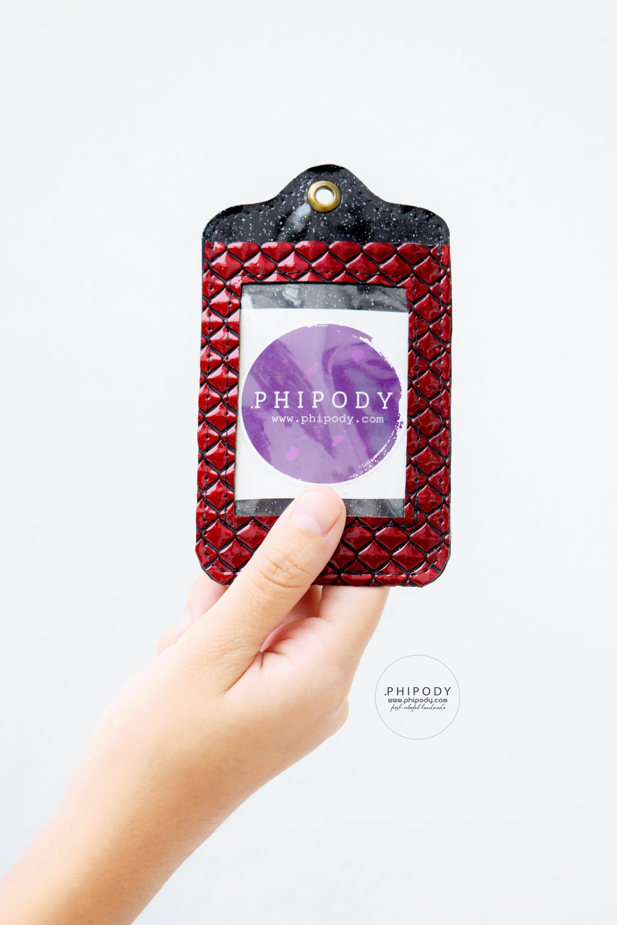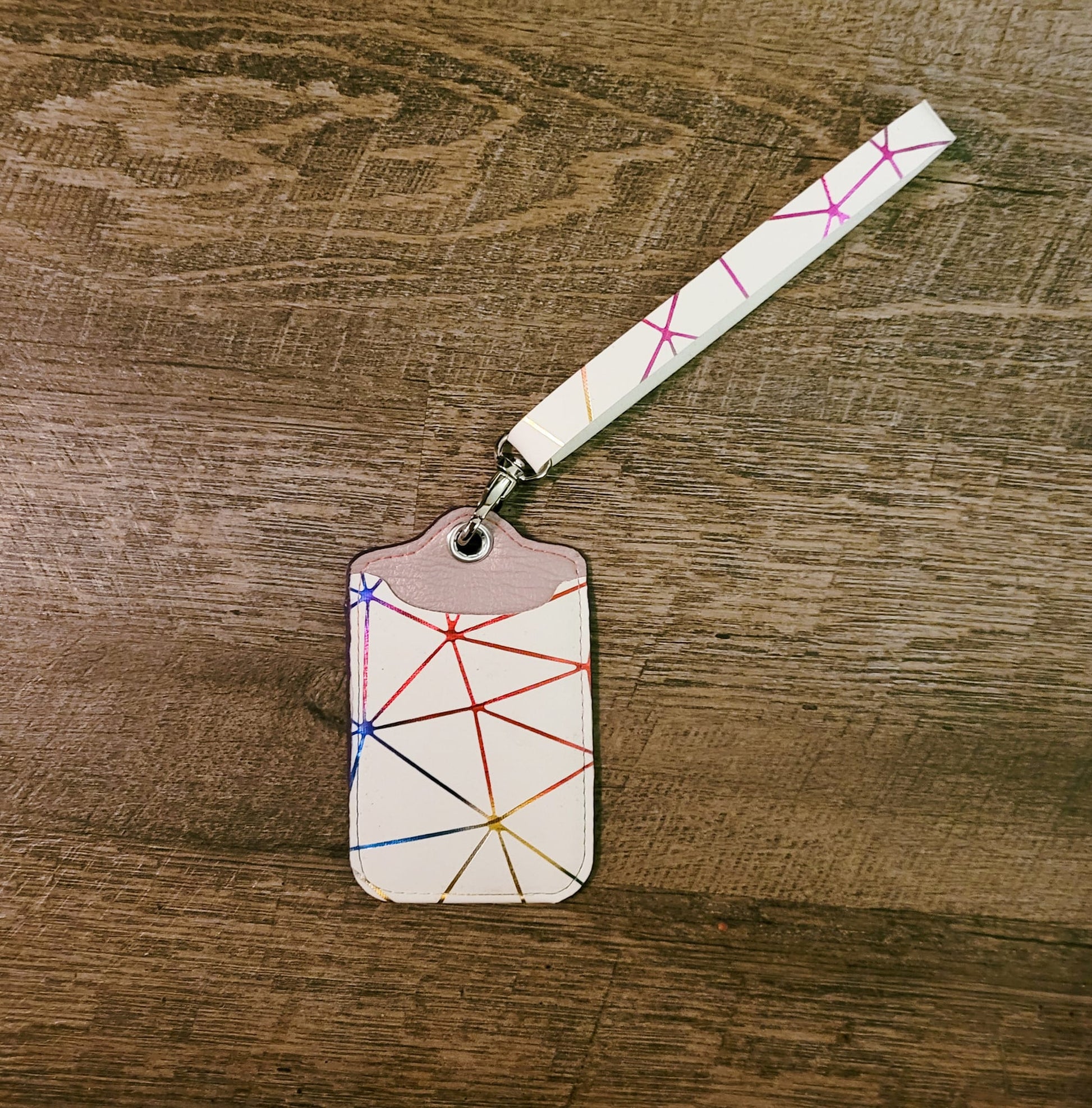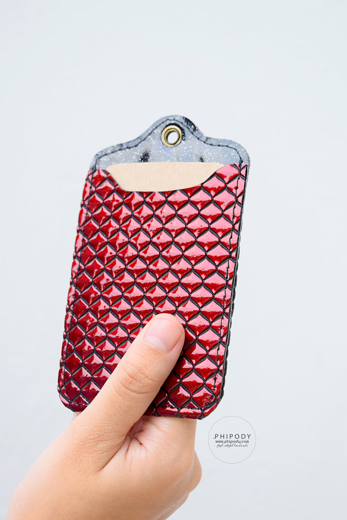 The Bloom ID Tag (a raw-edge pattern) is a basic cardholder design that will hold at least 2 cards. The front of the tag features a clear window for your ID and there is an additional card slot at the back. Add a strip of leather cording and it can be used as a luggage tag as well!