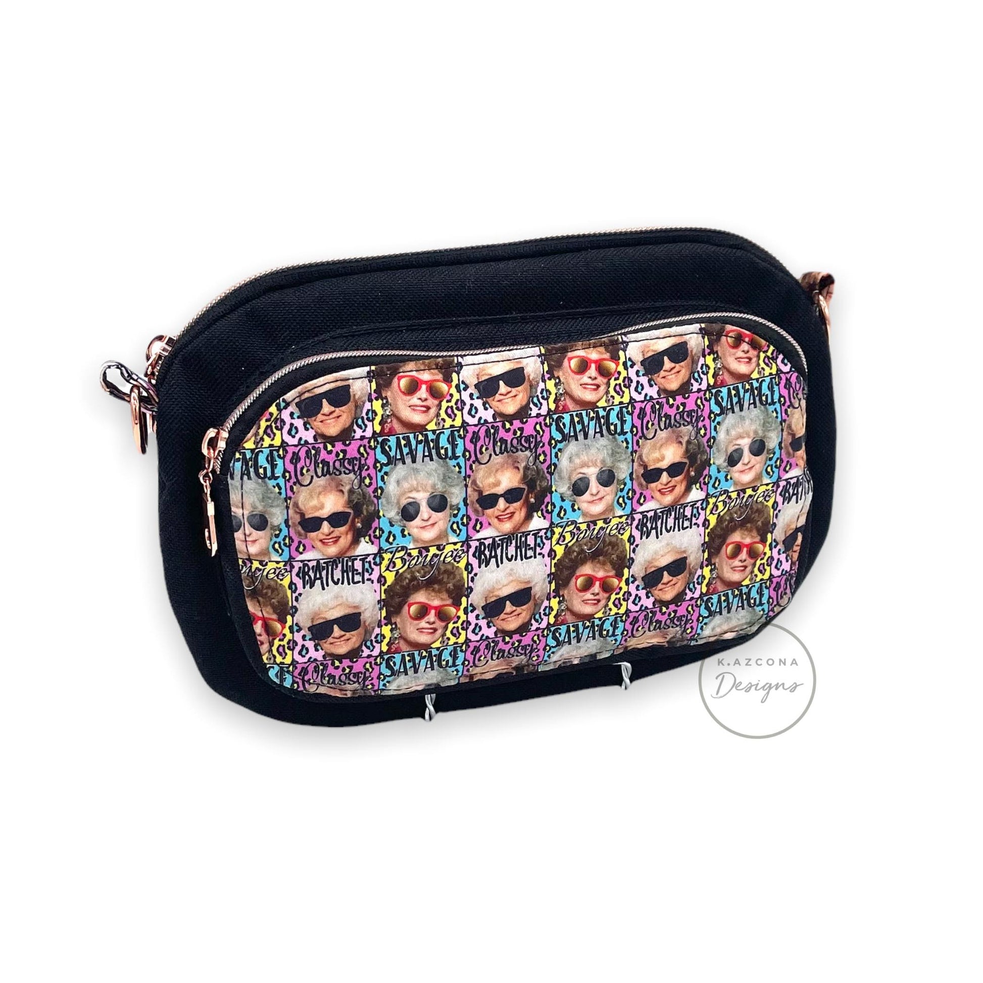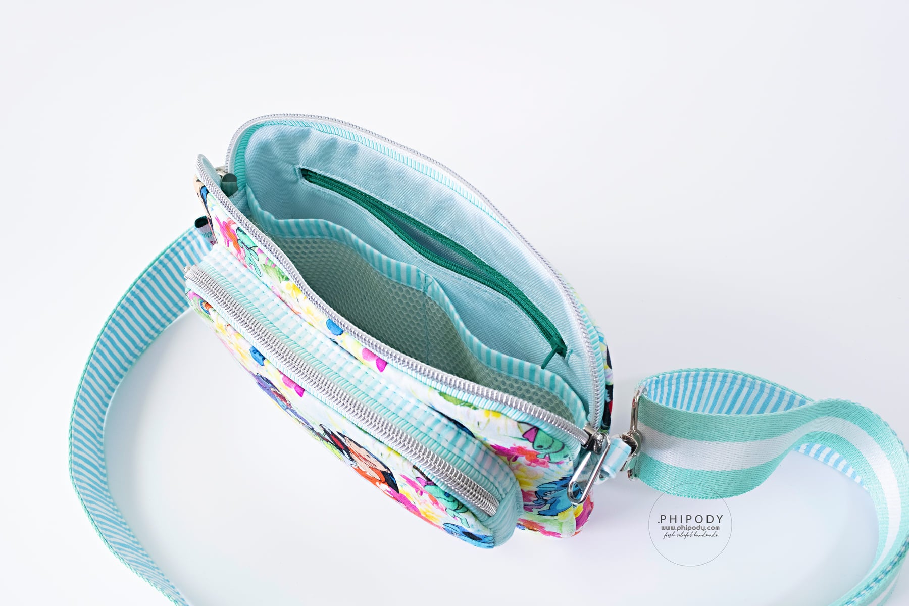 COMPACT and streamlined, this little pouch will fit most phones with ample space for snack bars for that quick energy boost. Options for mesh pockets and interior zipper pockets are provided, depending on your needs. It features an adorable and functional 3D front zipper pocket spacious enough for your keys and our Bloom Mini Wallet fits perfectly!