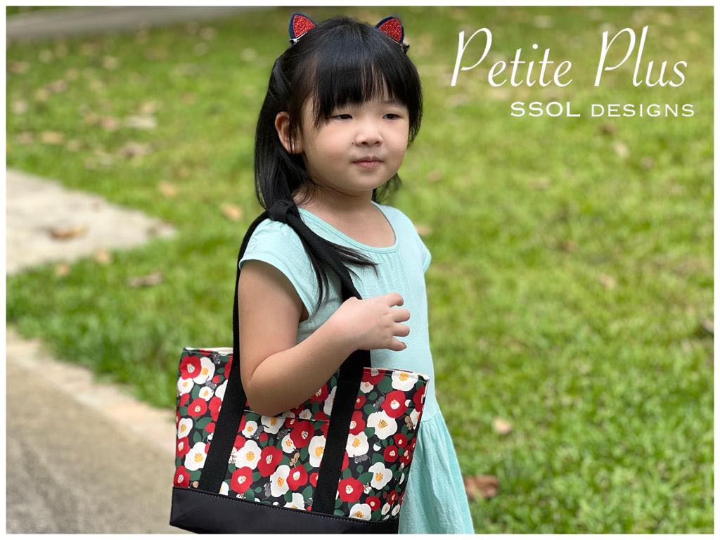 Please follow the instructions for the Petite Tote when you are making Petite Plus. The steps remain very much the same with some small changes in magnetic snap and strap positions. There are also two additional add-on options for this size.