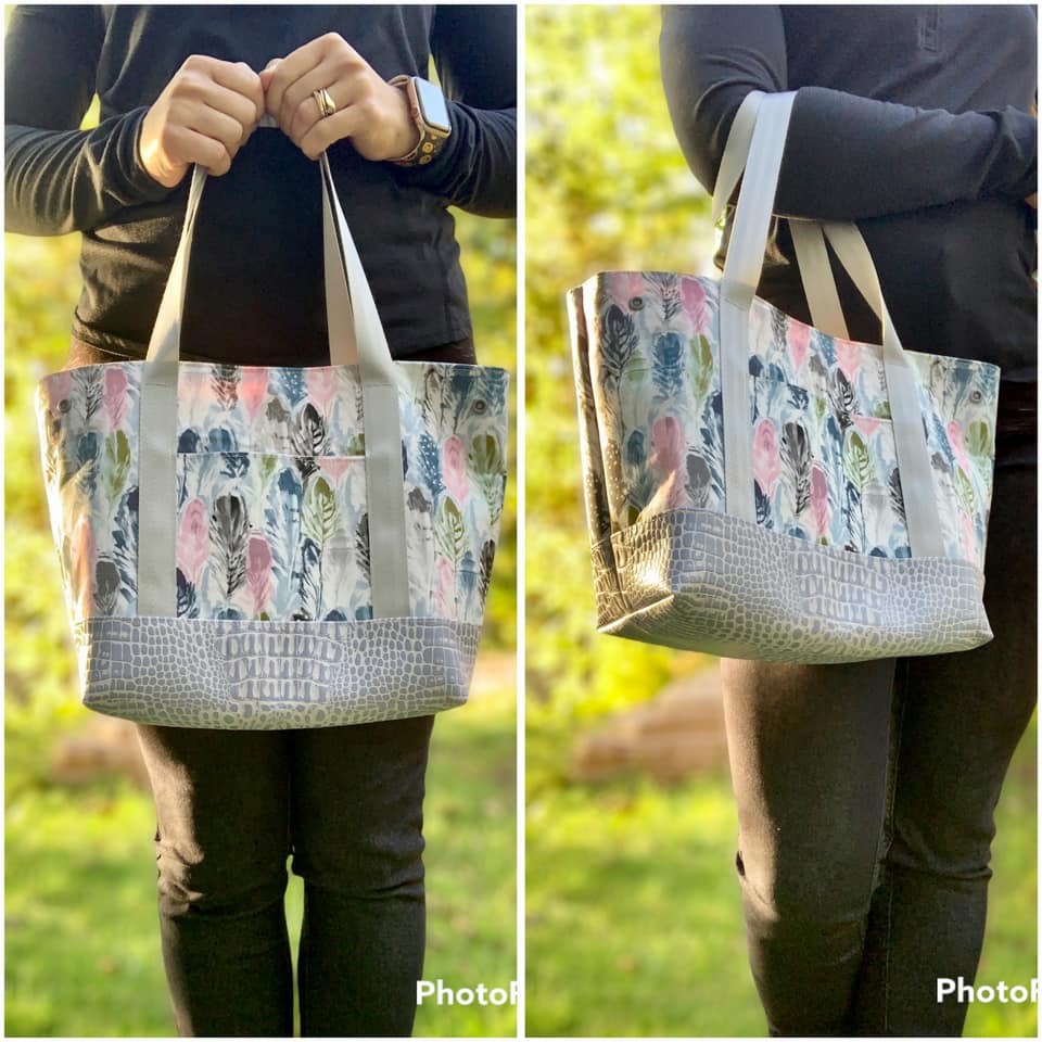 There are two files in this pattern. The pdf pattern for the Petite Tote includes 26 pages of sewing instructions, complete with 47 step-by-step color photos. The add-on instructions for the Petite PLUS includes 24 pages of instructions, complete with 12 step-by-step color photos. Also included in the PDF pattern are printable pattern pieces for your home printer. A video tutorial (right at the bottom of this page) is also available for the visual learners.