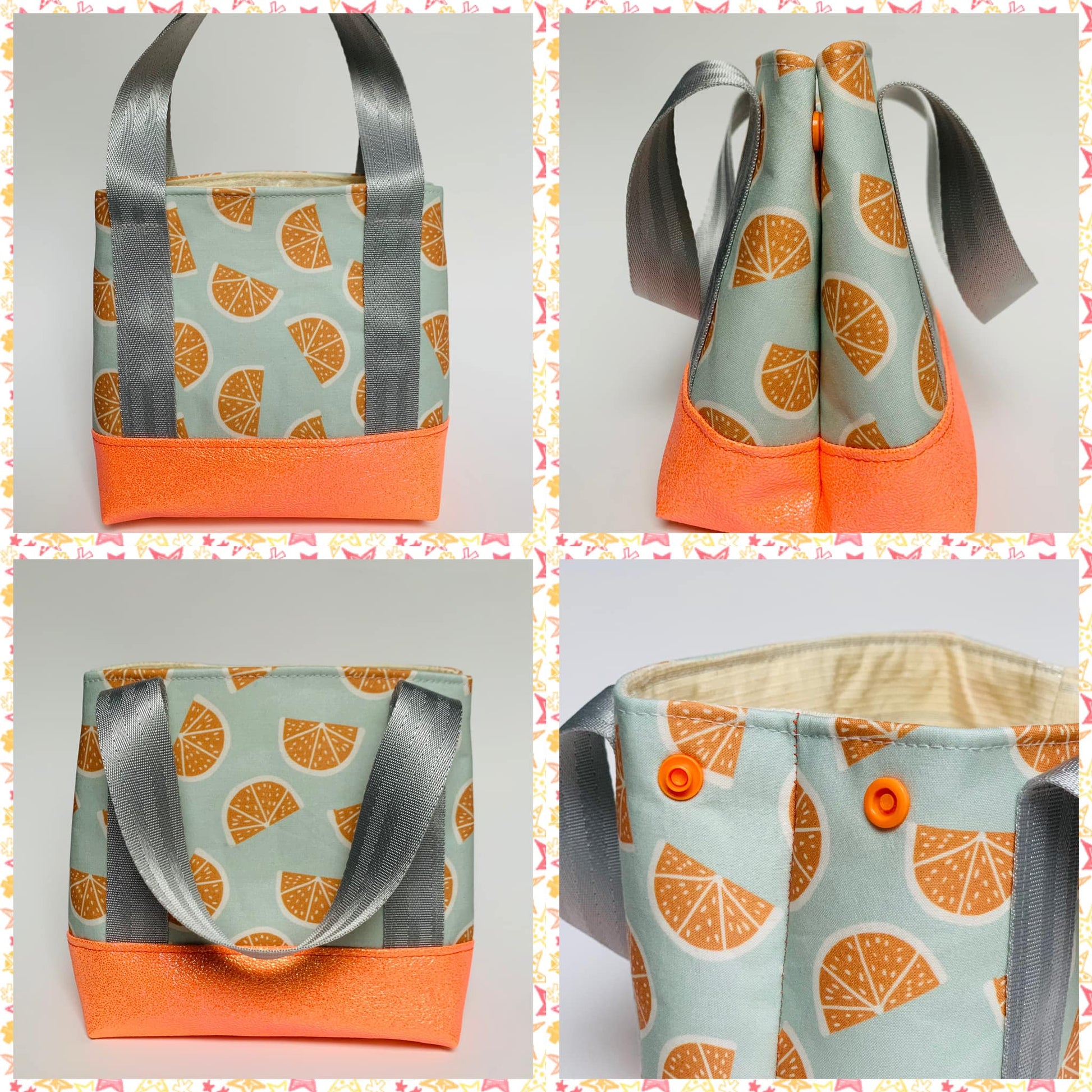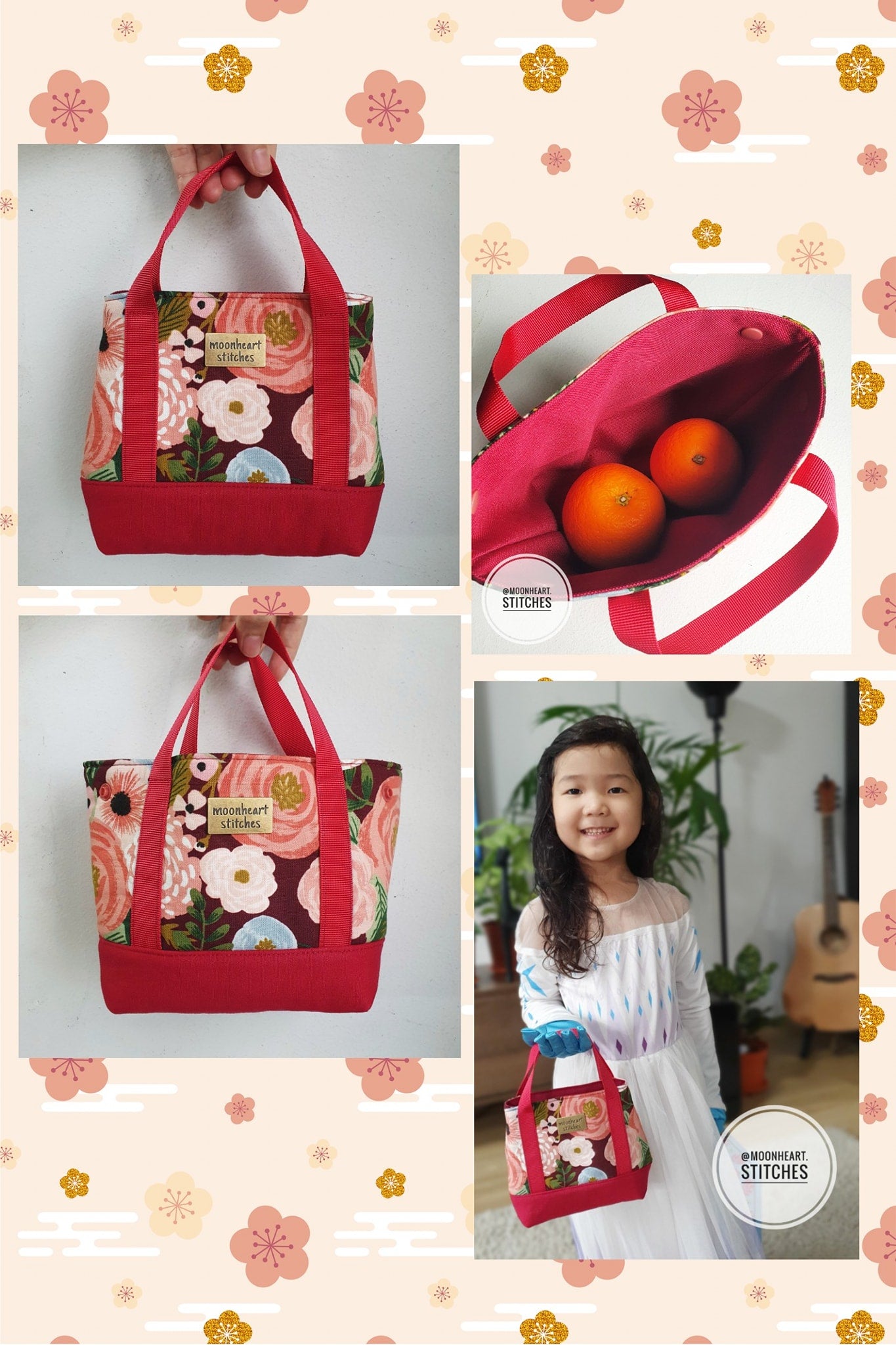 This adorable little hand-carry tote was originally designed to be used as a carrier to hold mandarin oranges when visiting family and friends during the Chinese New Year. The mandarin orange is an important symbol of the Chinese New Year. The small citrus looks like the sun, and because the sun is aligned with the yang (positive) principle, it is a symbol of abundance and happiness. They are not only used as decorations, but given as gifts when visiting family and friends as a symbol of sharing abundance and good fortune.