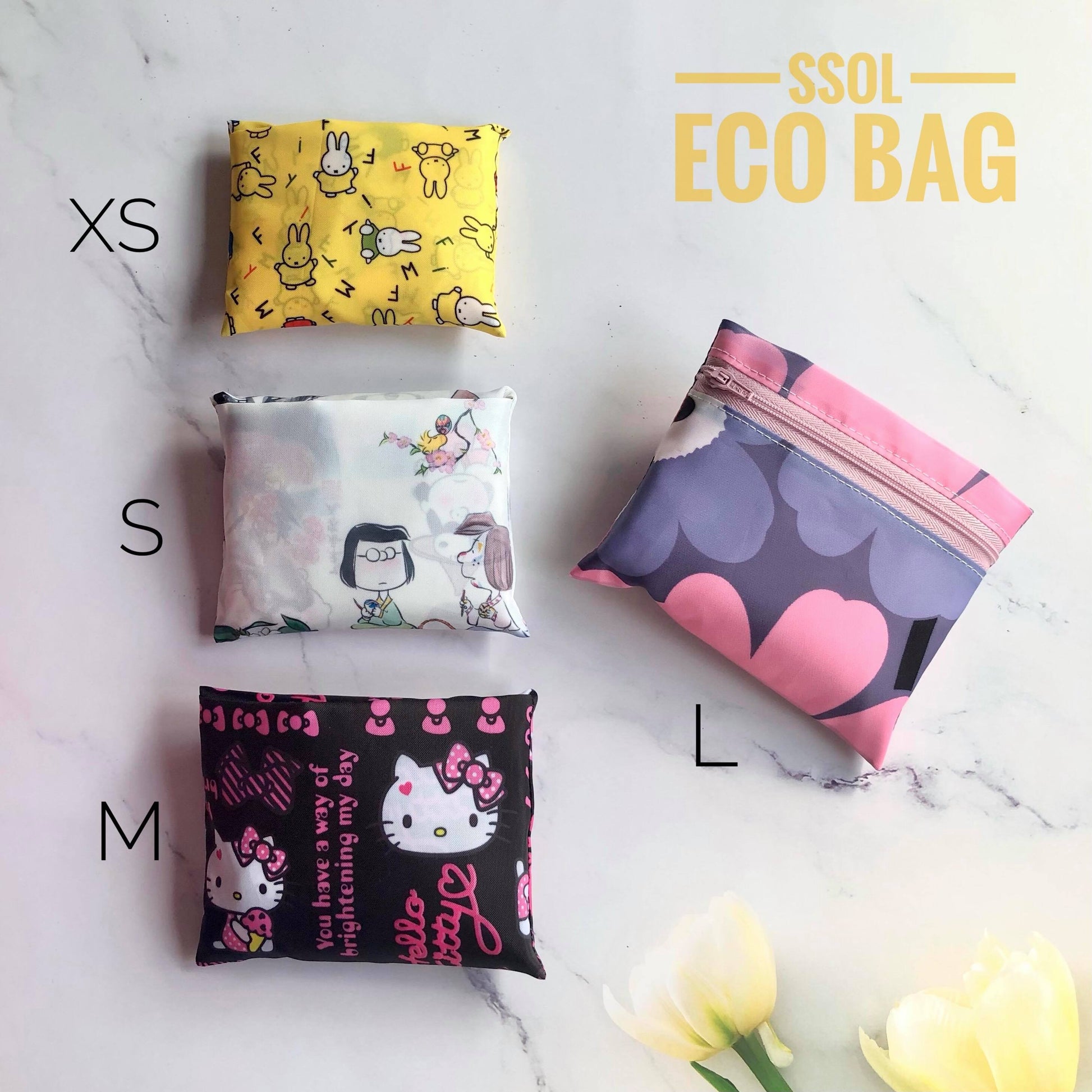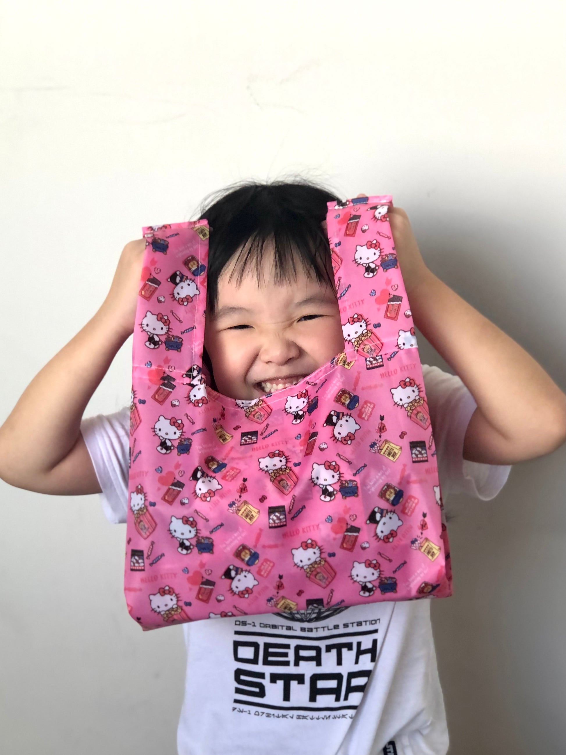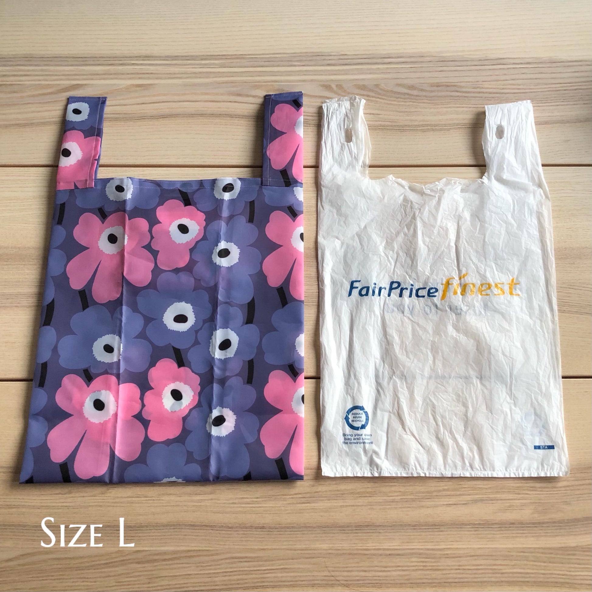 The XS, S, M and L sizes are sizes similar to the plastic bags that we typically use in our everyday life. The Bento Couple and Family sizes have got very wide bases which allow for Bento/lunch boxes to fit into comfortably without tipping over. The last size, which I termed Ramen Tower, is ideal for carrying rounded containers typically used for soups or noodles.