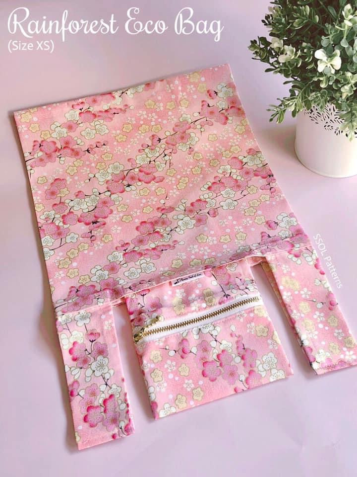 There are 7 different sizes in this pattern, namely XS, S, M, L, Bento Couple, Bento Family and Ramen Tower. You could choose to make it with an internal slip pocket OR a zippered version of it (fully lined). This pocket is also where the entire bag could be folded and tucked into as well. How compact and convenient to carry along in your purse!