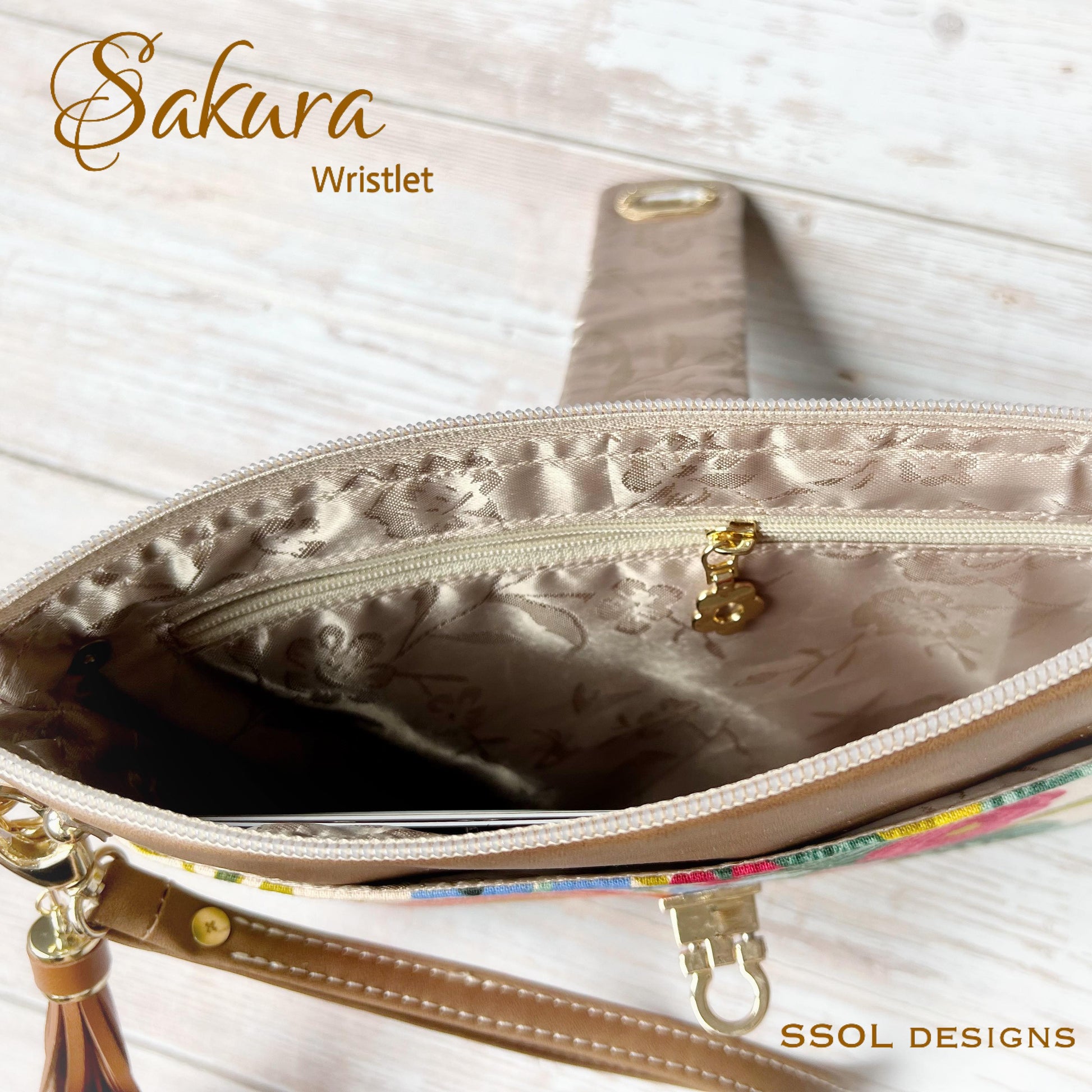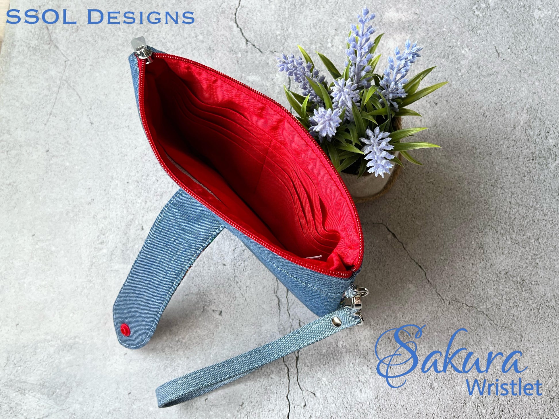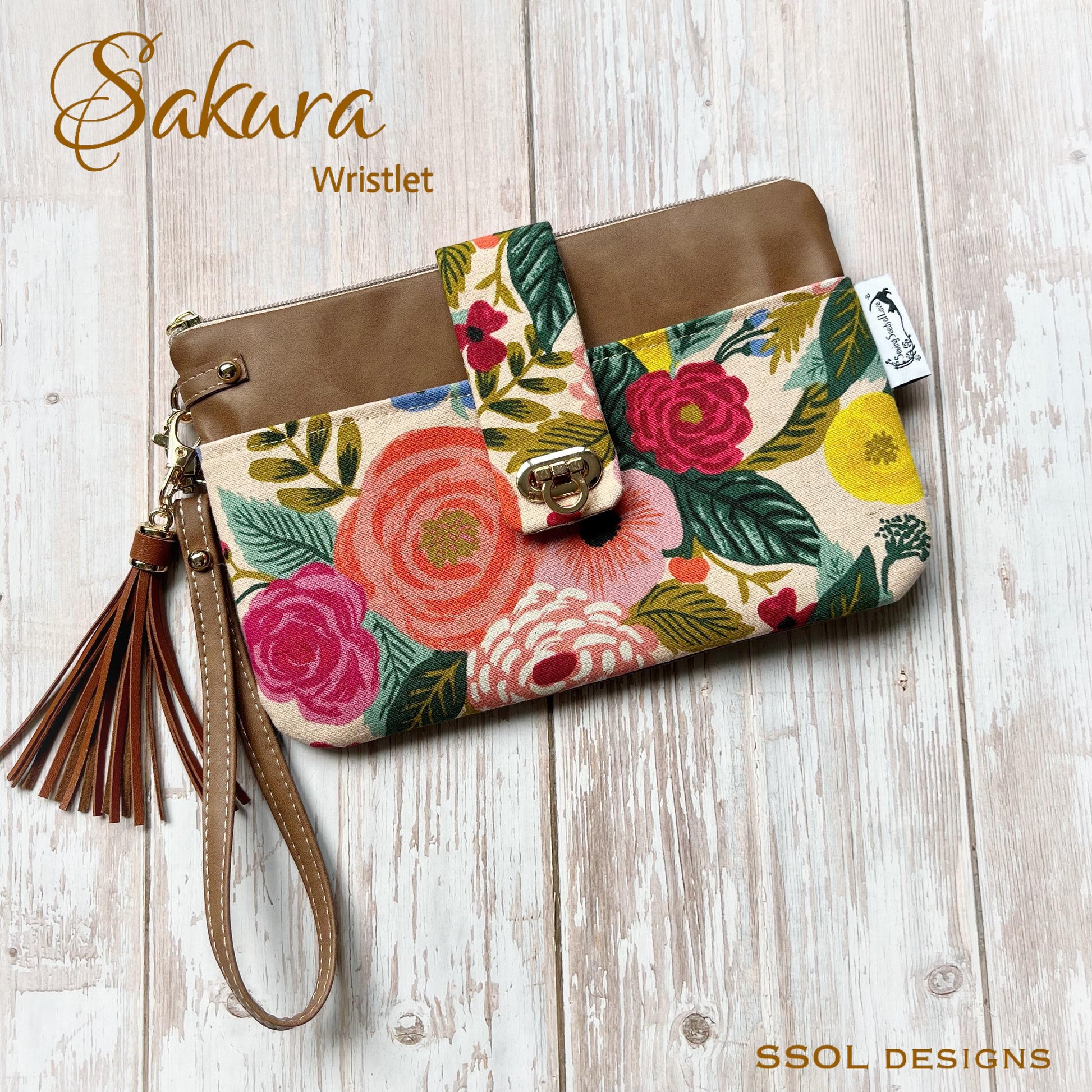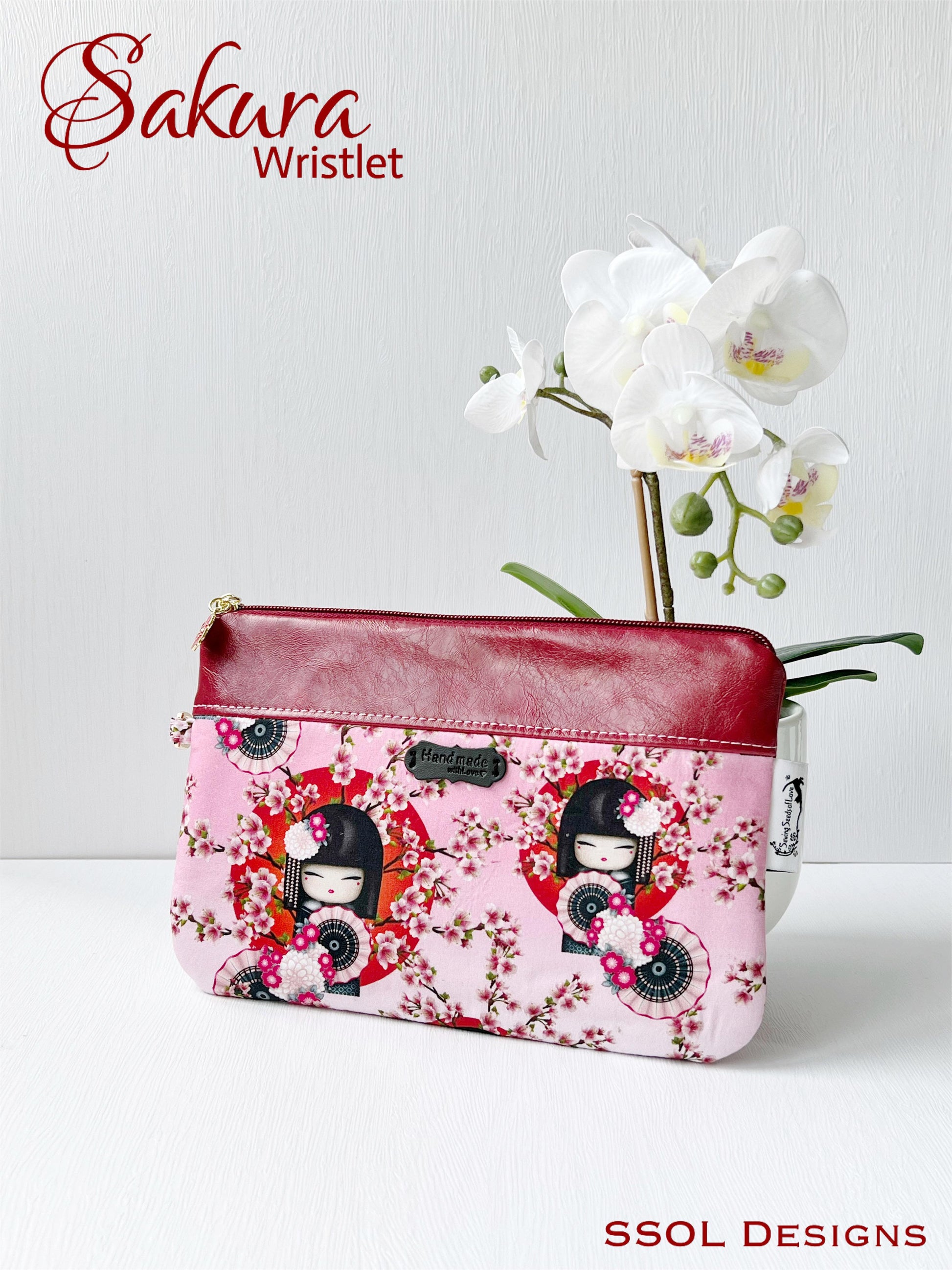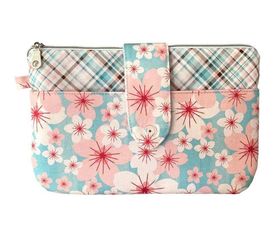 Meet Sakura Coin Pouch’s big sister - The Sakura Wristlet! It is a larger version of the Sakura Coin Pouch and more! The pattern retains the rounded zipper technique previously shared in the Sakura Coin Pouch. On top of that, an exterior slip pocket is added to the front of the bag for easy access to your phone.