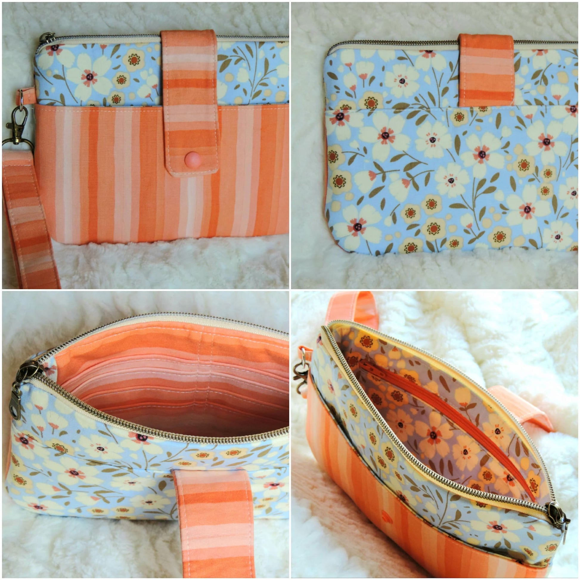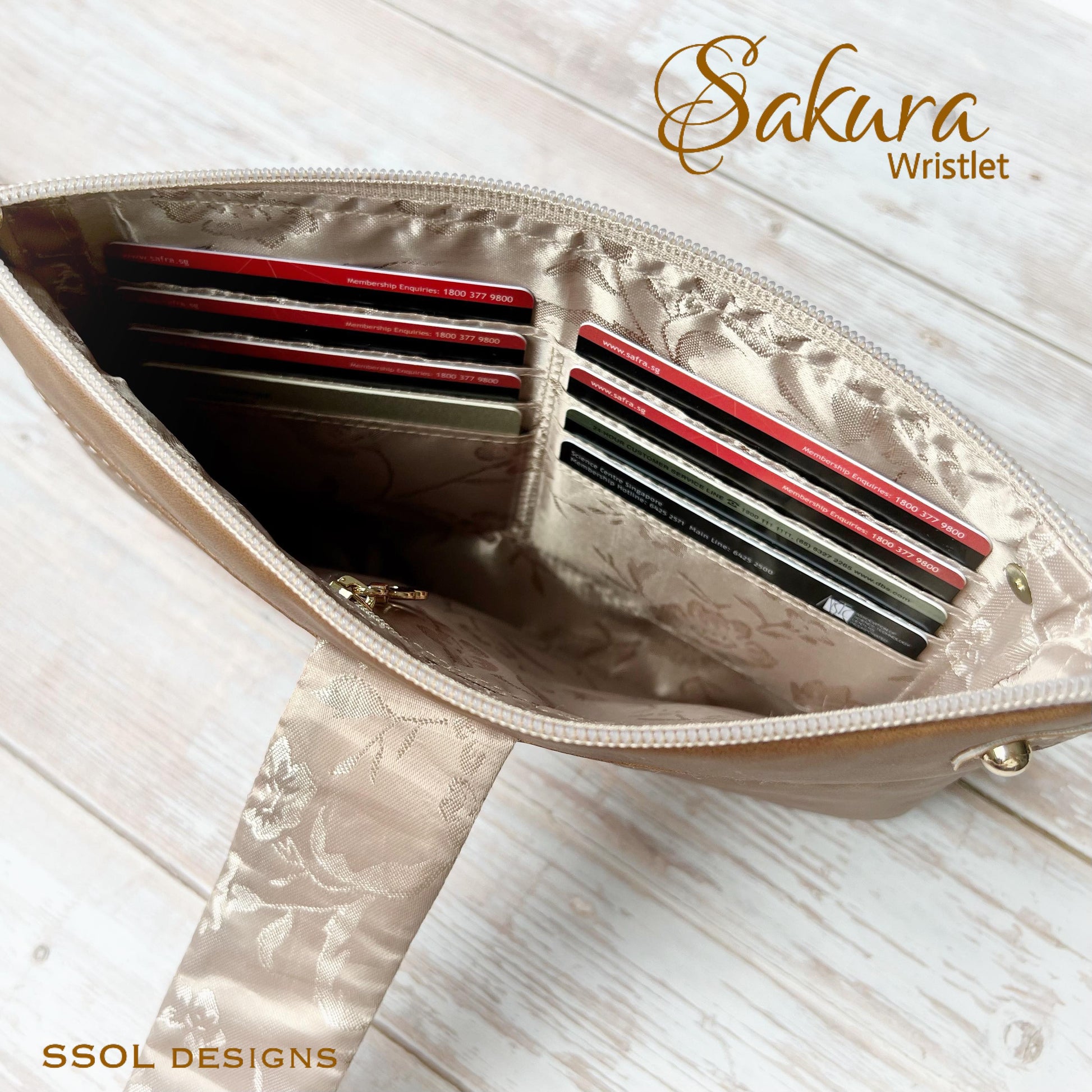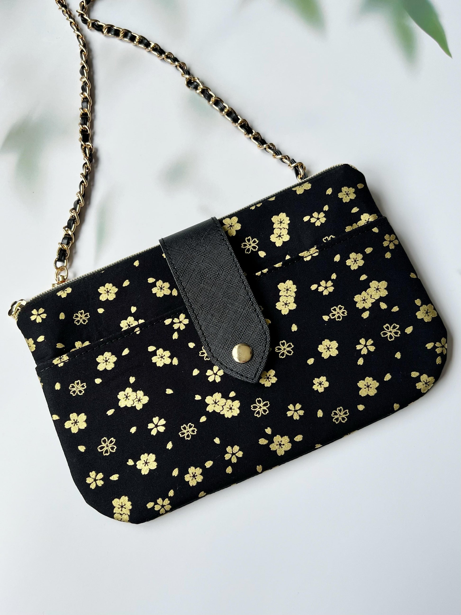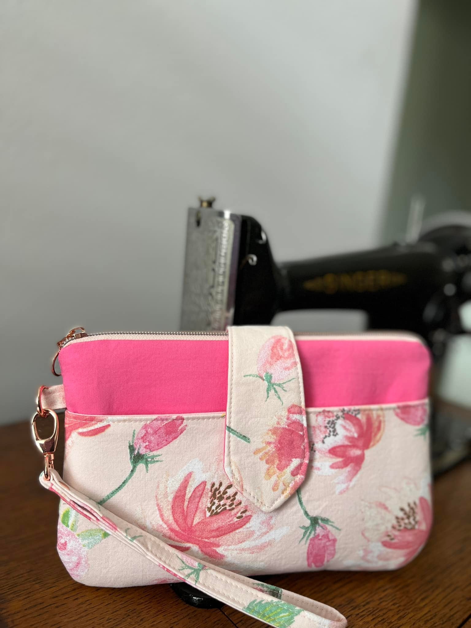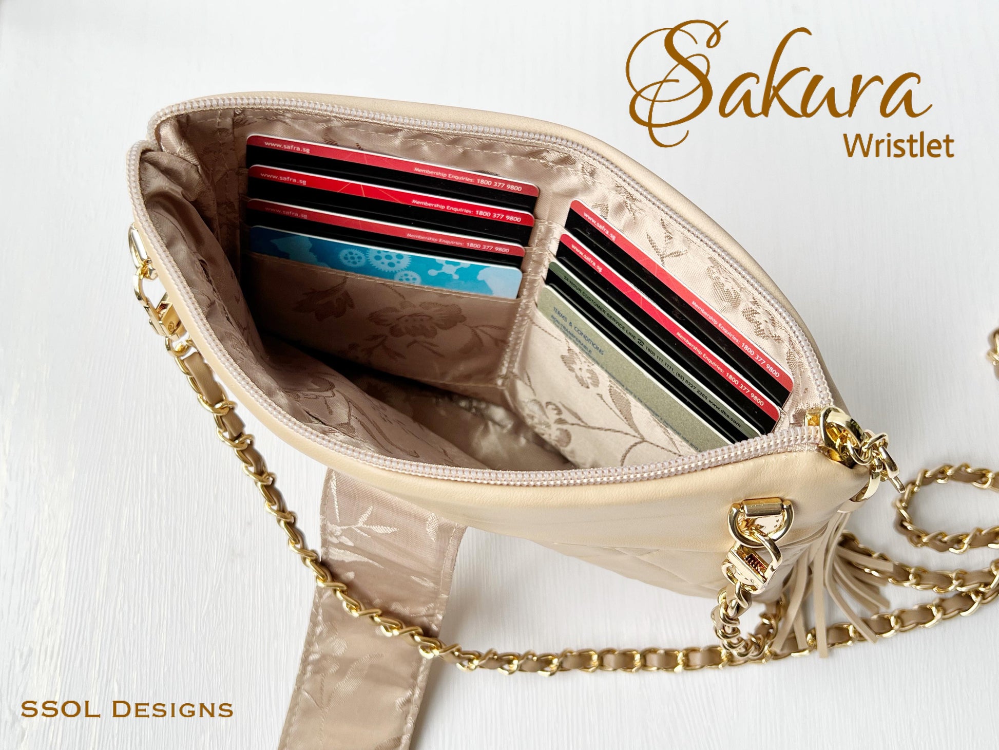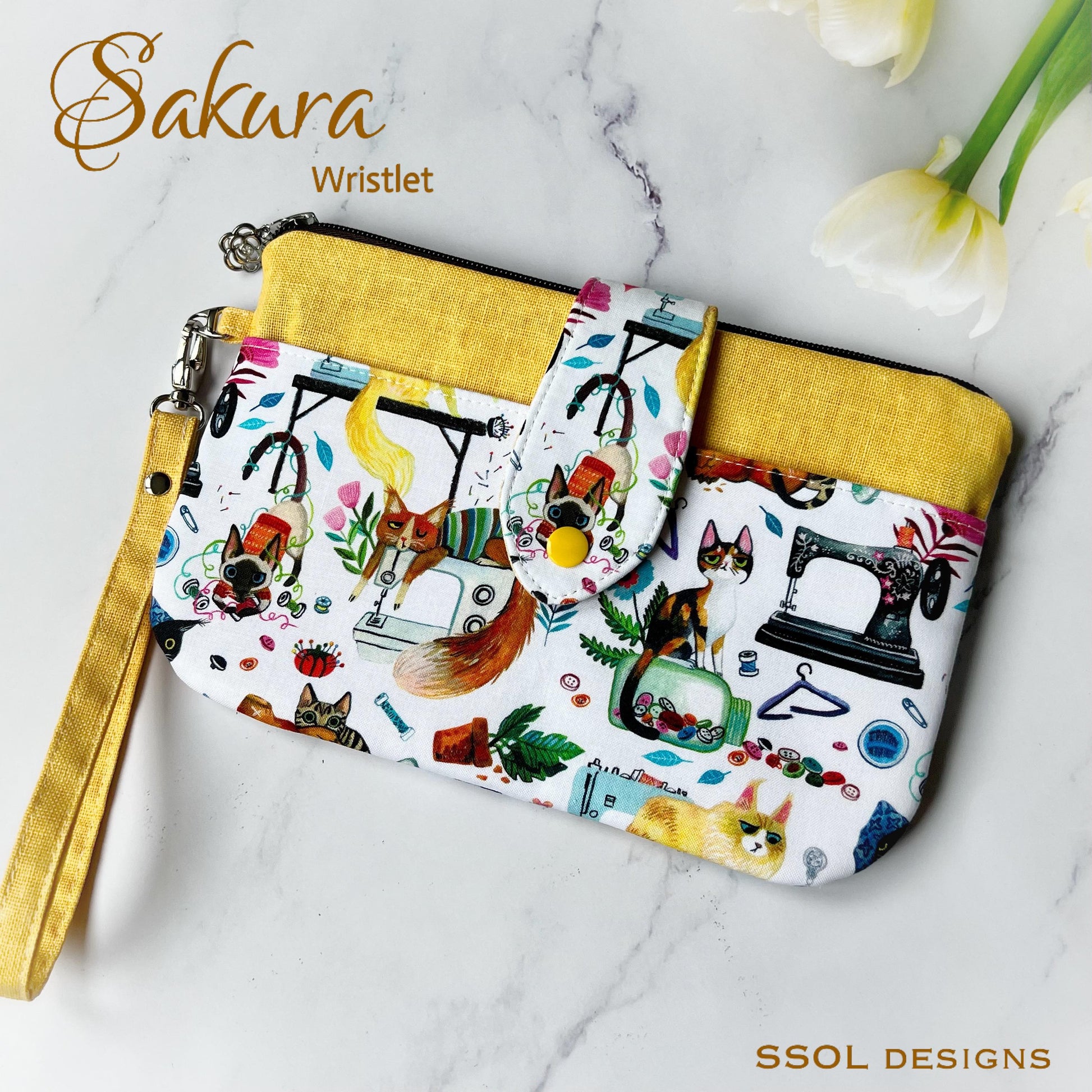 Meet Sakura Coin Pouch’s big sister - The Sakura Wristlet! It is a larger version of the Sakura Coin Pouch and more! The pattern retains the rounded zipper technique previously shared in the Sakura Coin Pouch. On top of that, an exterior slip pocket is added to the front of the bag for easy access to your phone.