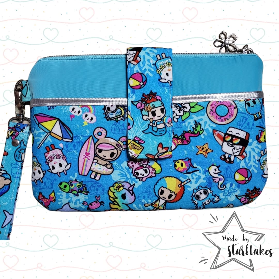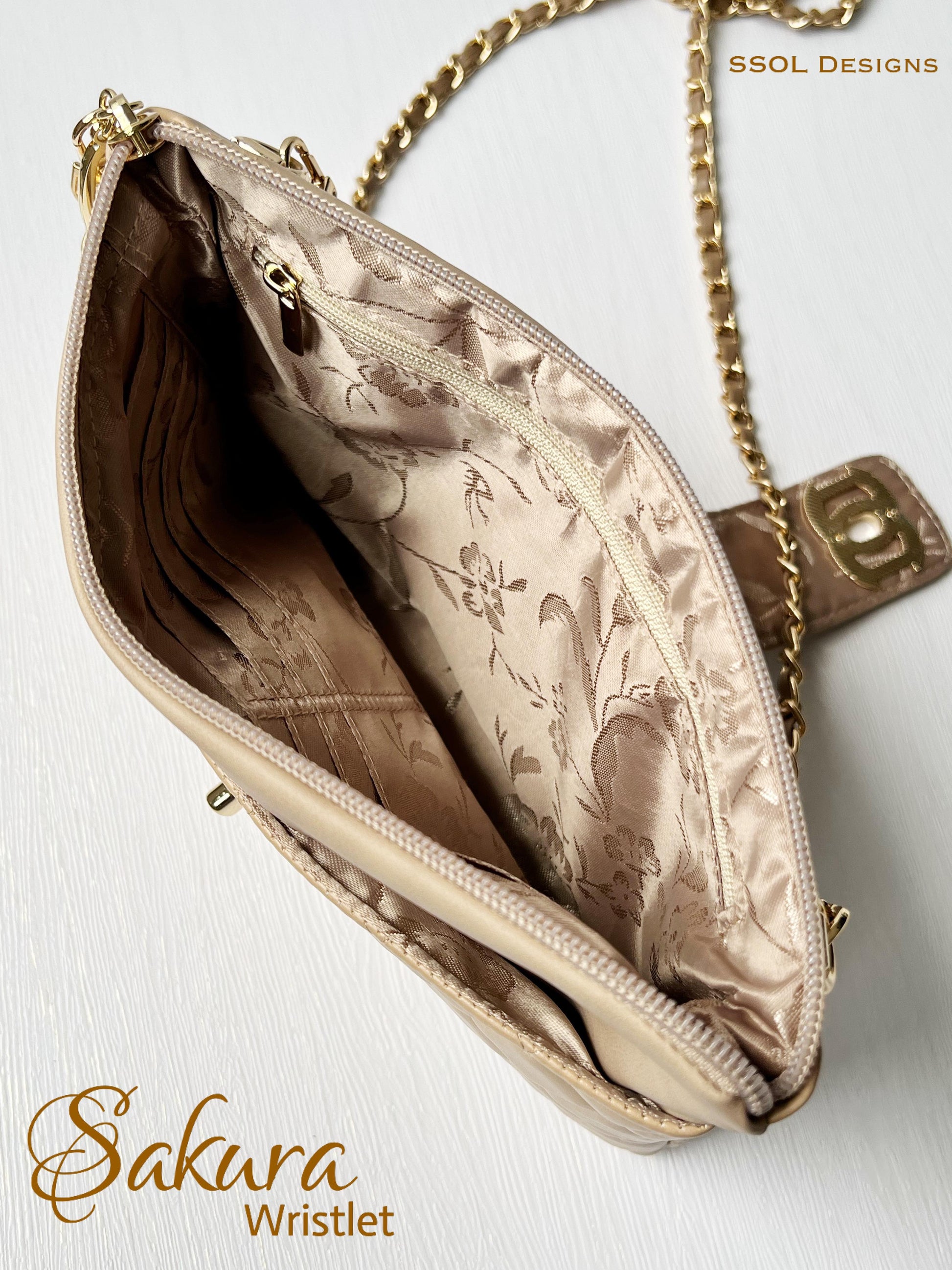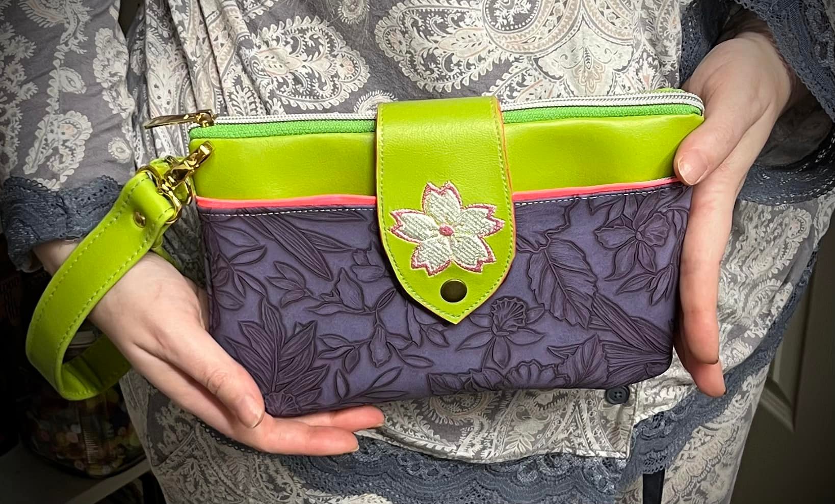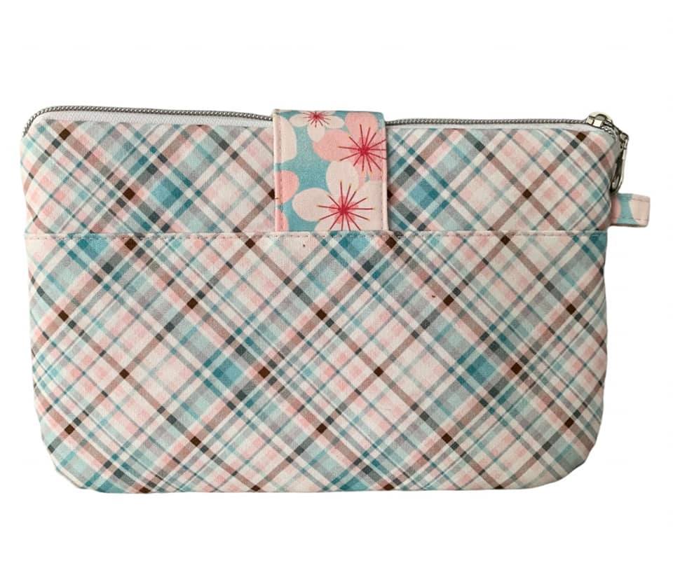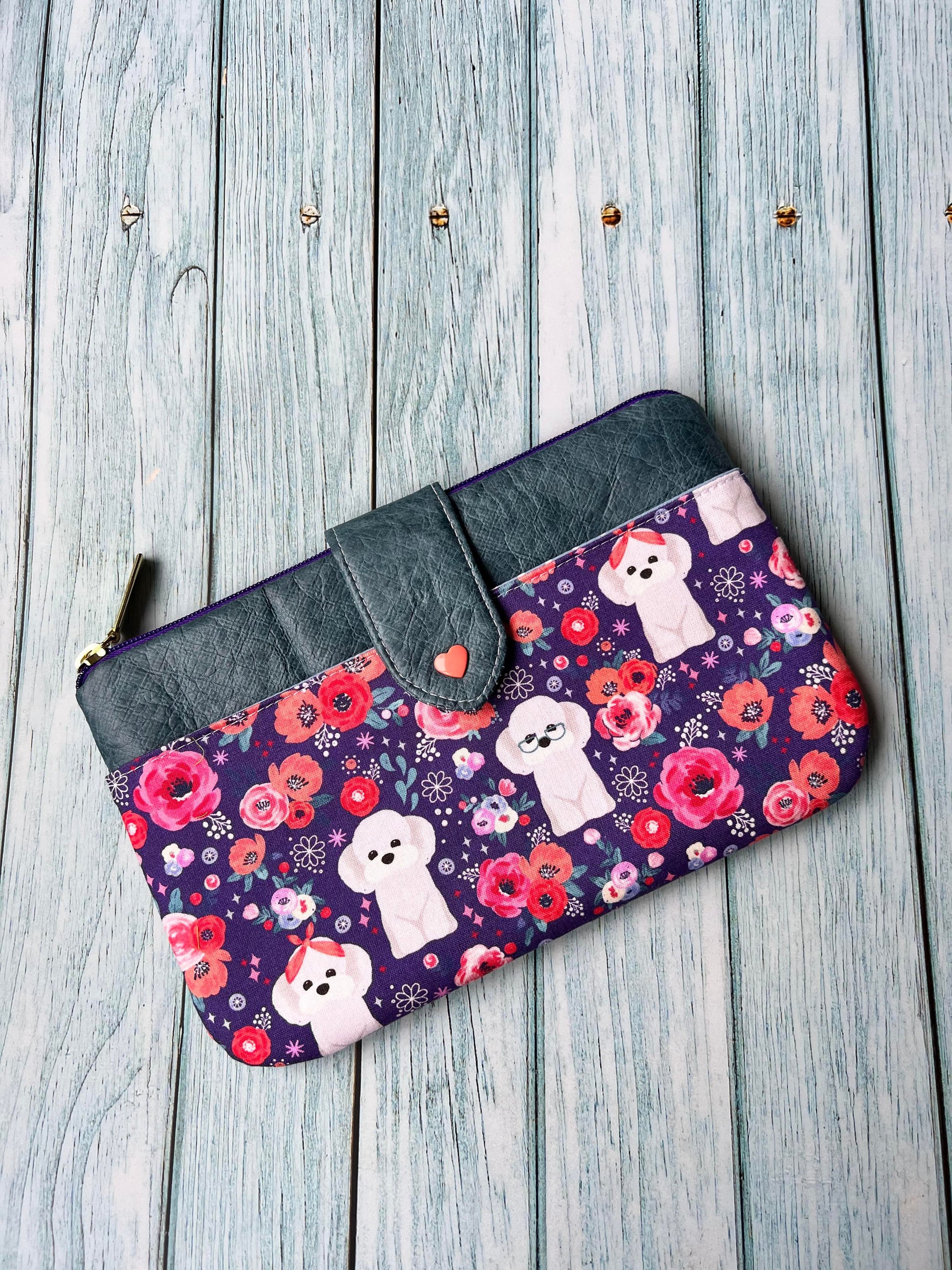 Meet Sakura Coin Pouch’s big sister - The Sakura Wristlet! It is a larger version of the Sakura Coin Pouch and more! The pattern retains the rounded zipper technique previously shared in the Sakura Coin Pouch. On top of that, an exterior slip pocket is added to the front of the bag for easy access to your phone.