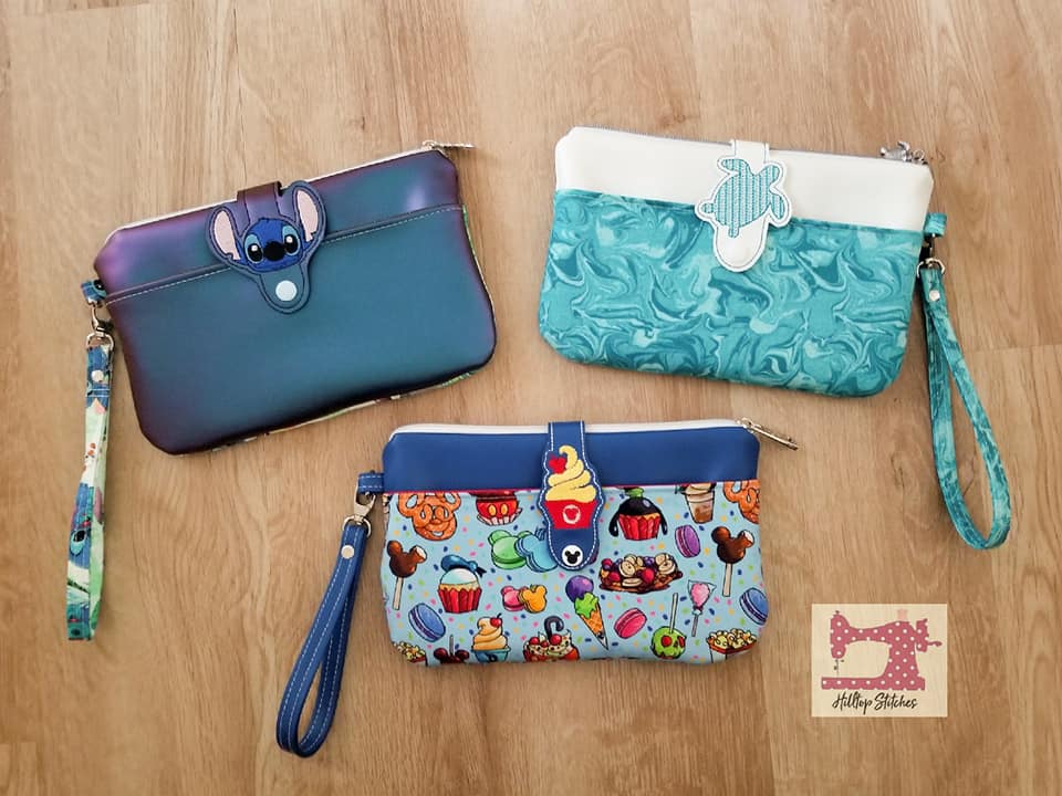 A fun feature of this wristlet is the snap tab addition. It allows you to switch up different snap tab designs to match the theme of your bag. Three different snap tab shapes are provided in this pattern. You can use any sort of closure system for the tab. Use plastic or metal snaps for a basic look. Magnetic snaps are great if you want a clean look and quick closure. Of if you are feeling adventurous, you could definitely go for a dressier look with the use of twist locks!