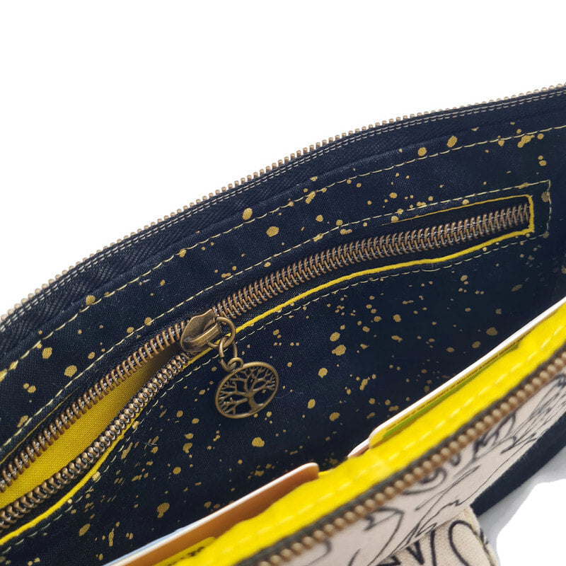 On the inside of the bag, there is a zipper pocket on one side and 8 card slots on the other. This makes it lighter on the bag should you choose not to carry a full-sized wallet. Its a slim yet spacious grab-and-go bag, great for everyday use!