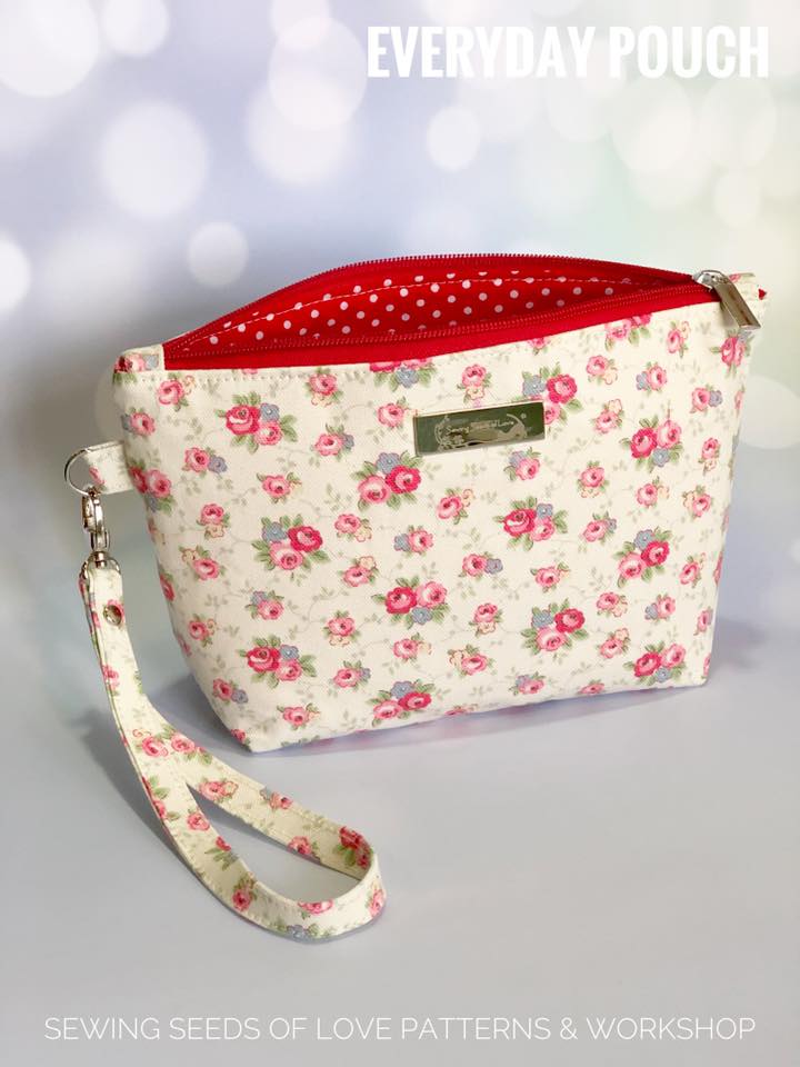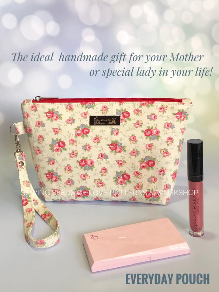 In this workshop, you will make a fully lined zipper pouch with 2 straps for handles. There are no interior/exterior pockets.