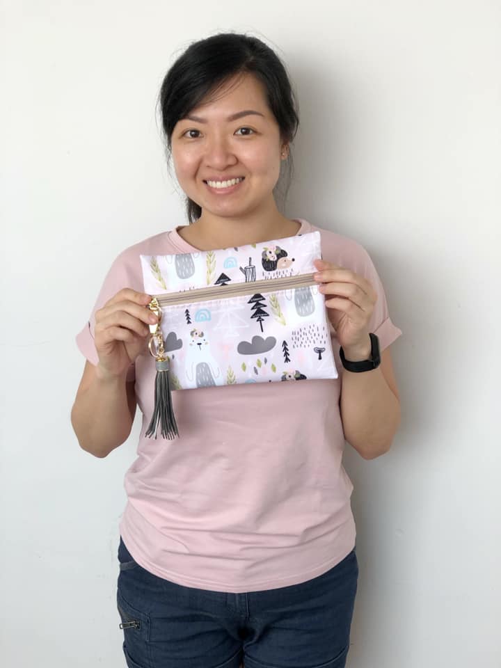 A good-sized water-resistant zipper pouch to store your essentials! The pouch lays flat (cleverly hidden seams on the inside) with a zipper running down the middle. This pouch design makes it super easy to locate your stuff and surprisingly packs quite a lot! My eldest is using this style as her pencil case and she prefers this to the zipper-on-top style as everything collapses to the base and makes it harder for her to find stuff.