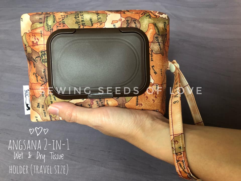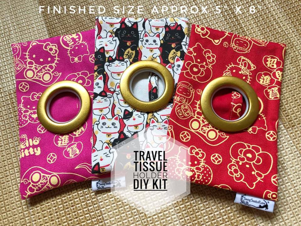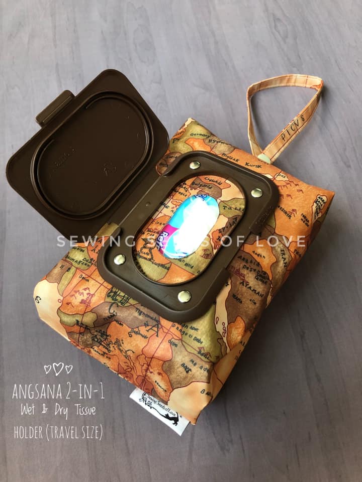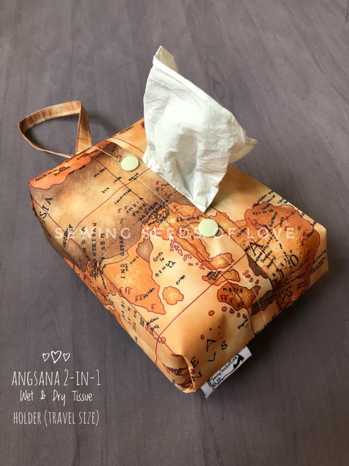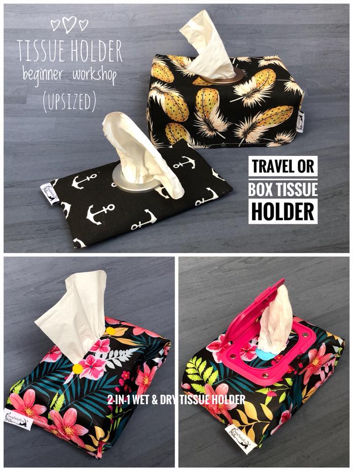 In this workshop, you will make 2 different projects. You can opt to combine the travel tissue holder and the 2-in-1 pouch or the box tissue cover and the 2-in-1 pouch. The travel tissue holder is meant to hold the 50 sheets travel size tissue (from guardian or watsons). The 2-in-1 wet and dry tissue holder pouch can store BOTH wet wipes and dry tissue (travel size) together.