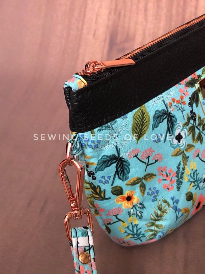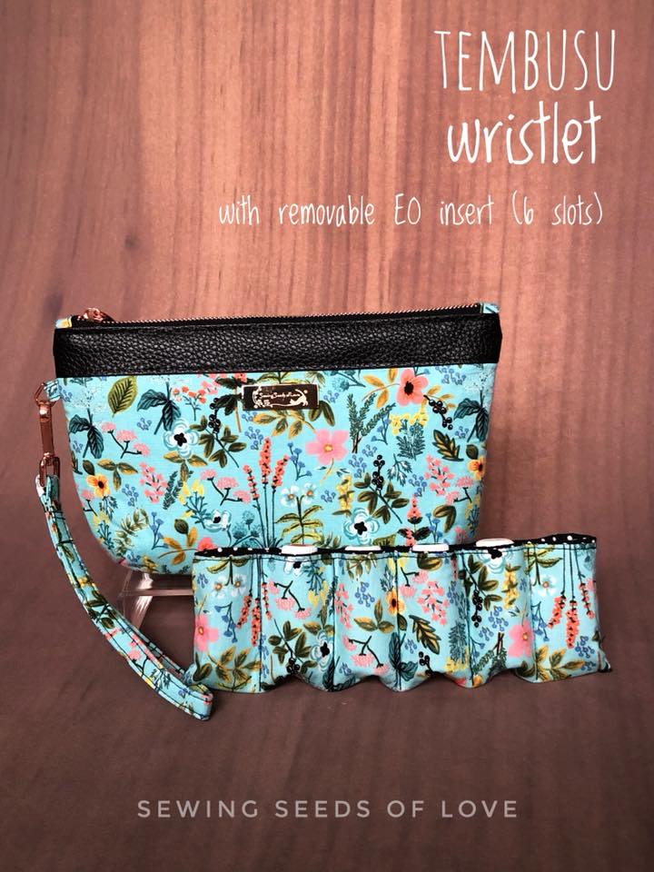 The Tembusu Wristlet is a roomy zipper wristlet that fits a full-size long wallet comfortably, as well as a 6-bottle essential oil insert.