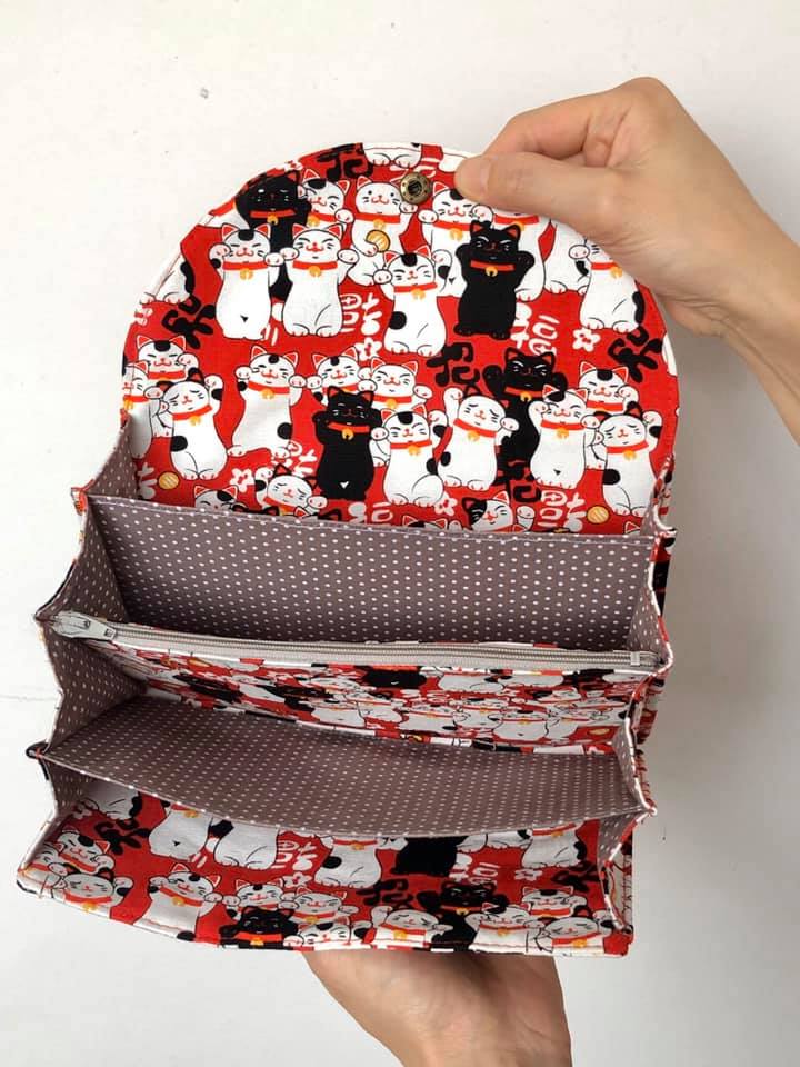 This accordion wallet has a total of 4 compartments. It also has a zipper pocket to hold your coins. You may opt for a metal snap or magnetic snap closure for the flap.
