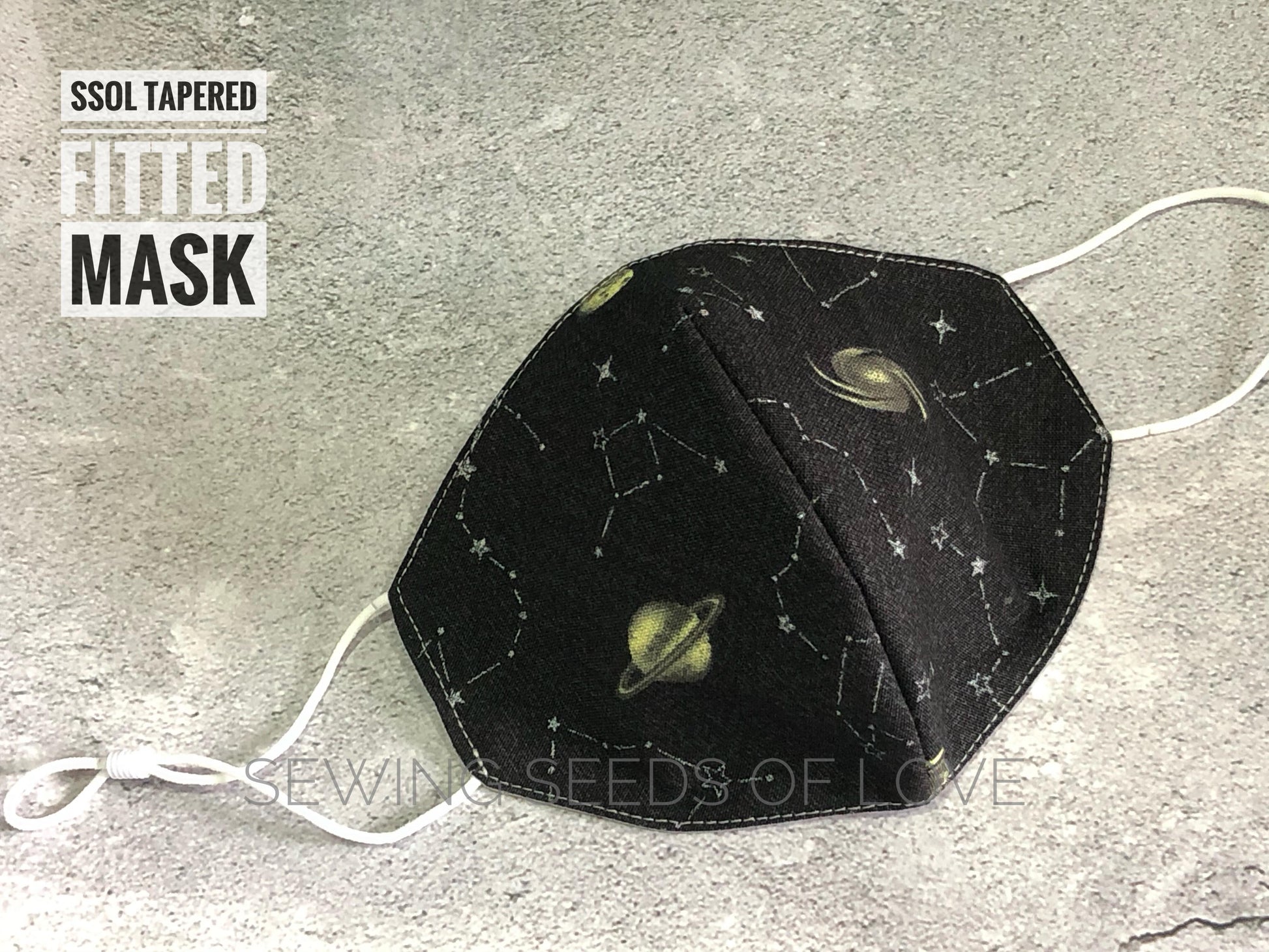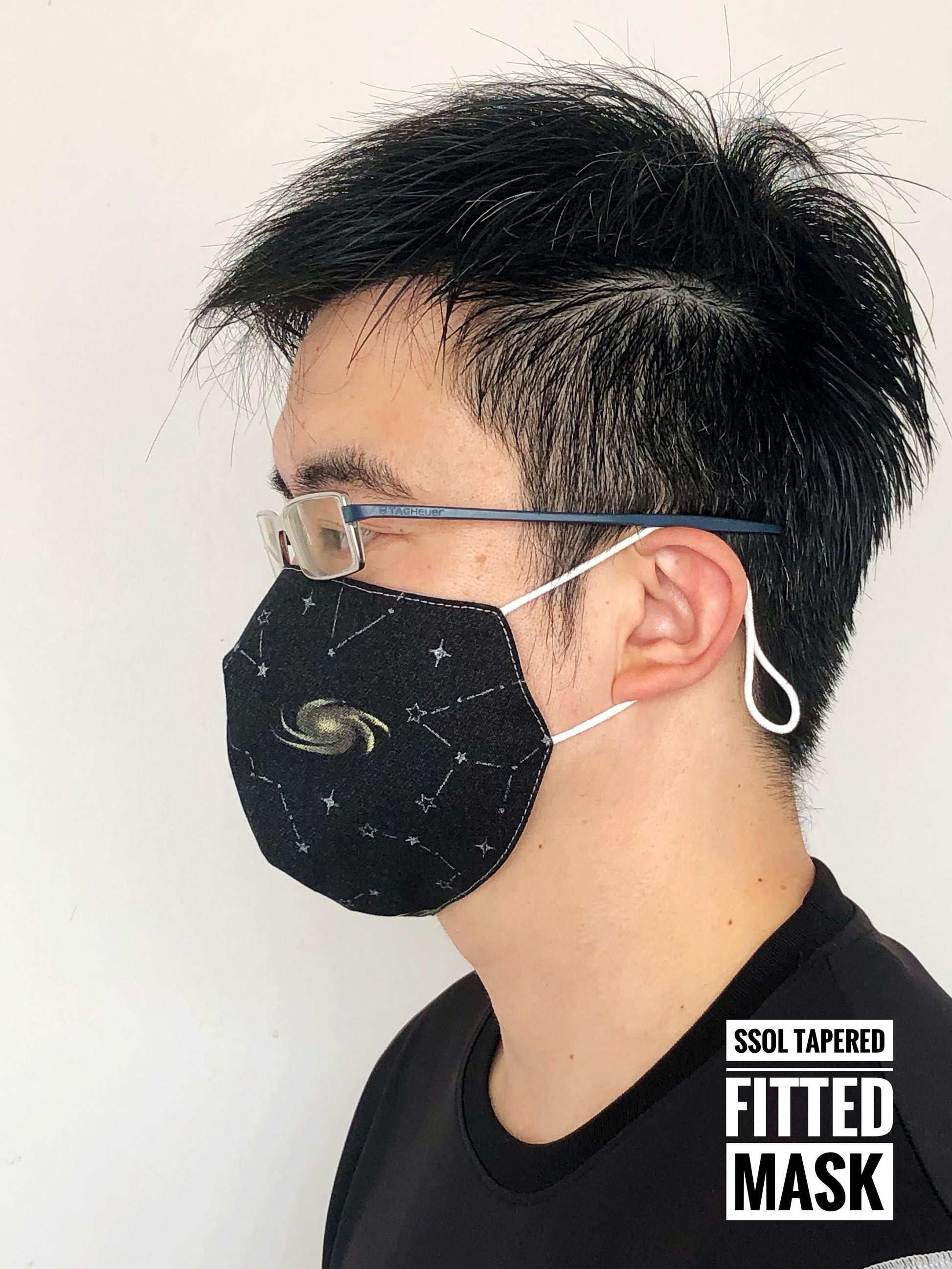 Sporty and sleek-looking. This fitted mask pattern offers an alternative for people who struggle with gaps at the sides of the cheeks. It features a high jawline and tapered sides. The 3D shape also offers plenty of breathing space without the lips touching the mask.